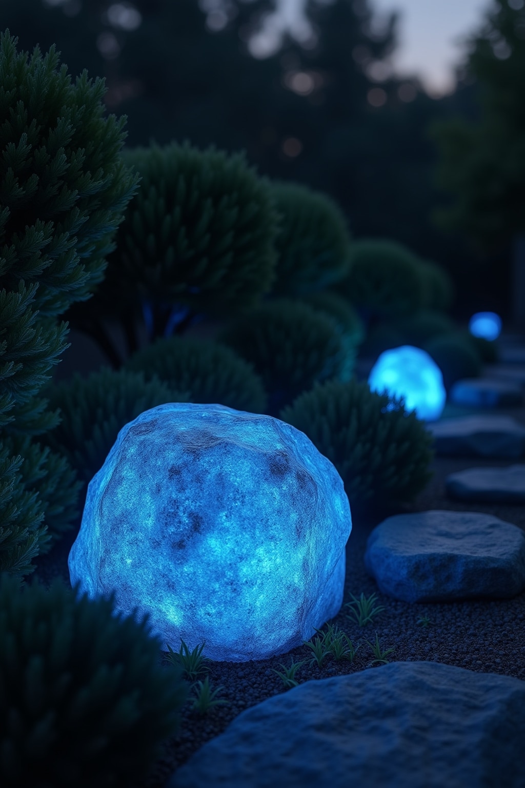 Beleuchtete Findlinge: Atmosphärische Gartendeko für die Abendstunden