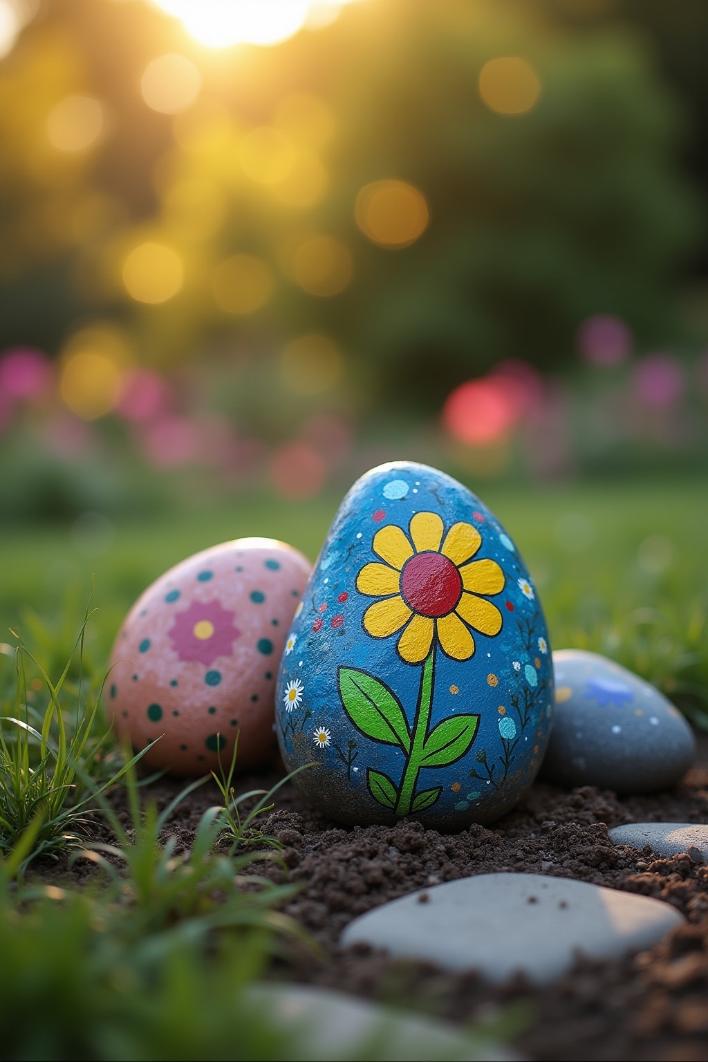 10. Bemalte Findlinge als dekorative Türstopper oder Buchstützen für die Gartenlaube