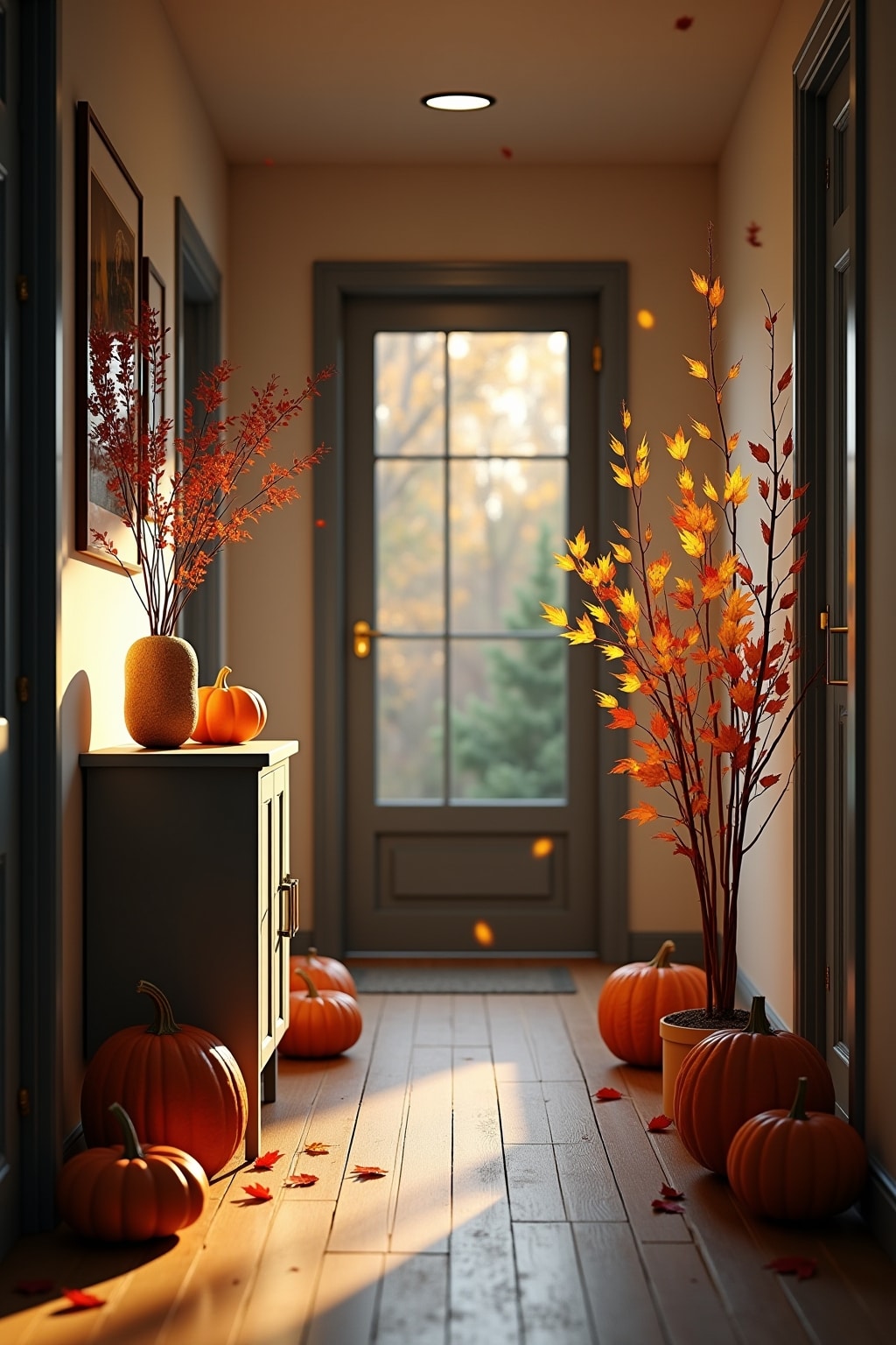 3. Herbst: Warme Erdtöne, getrocknete Blätter und Kürbisdeko für gemütliche Herbststimmung