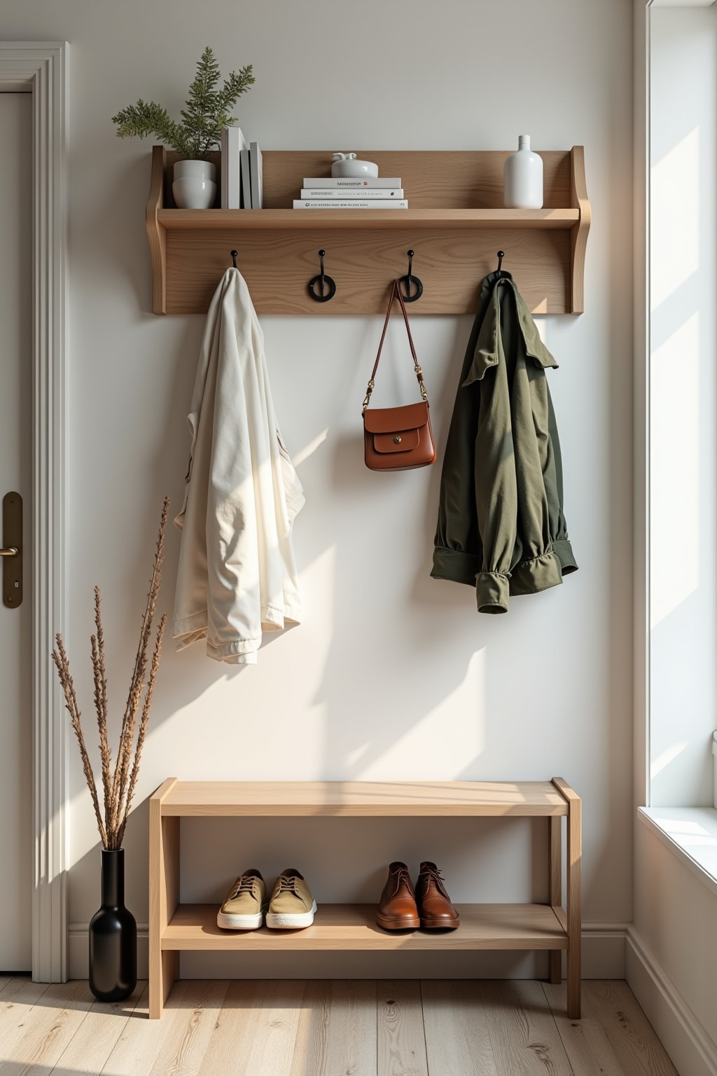 2. Stilvolle Garderobenhaken oder -ständer, die sowohl Stauraum bieten als auch als Designelement dienen