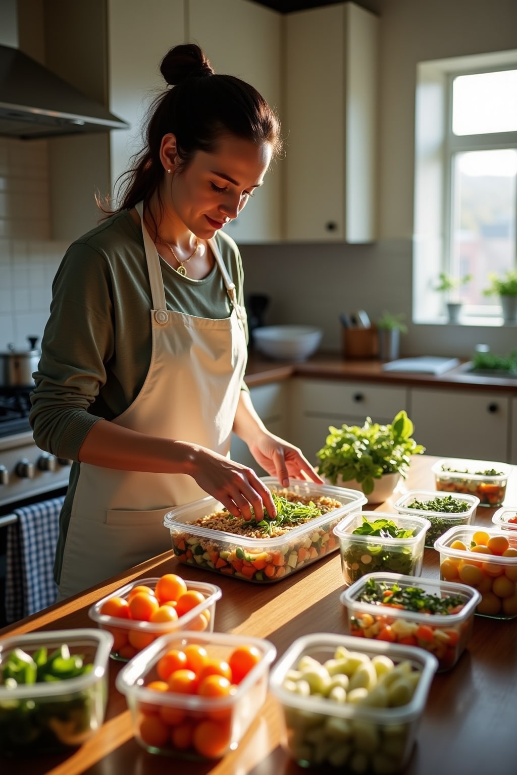 3. Prep ingredients in advance – chop vegetables, cook grains, and portion proteins