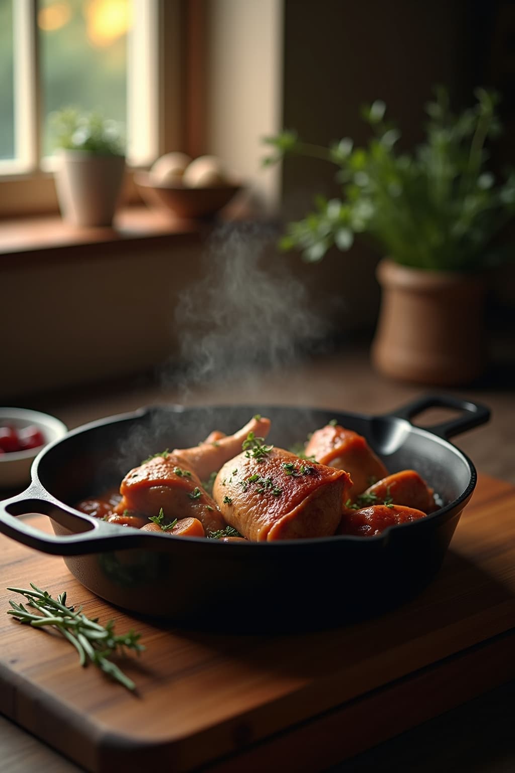 1. Winter: Coq au Vin with red wine and mushrooms harvested during cold months
