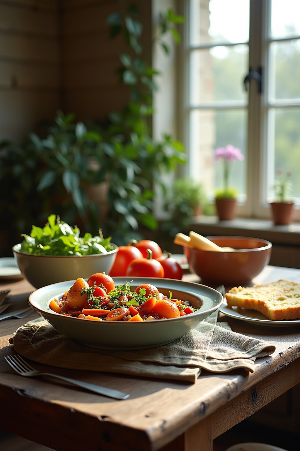 5. Summer: Ratatouille showcasing peak-season tomatoes, zucchini, and eggplant