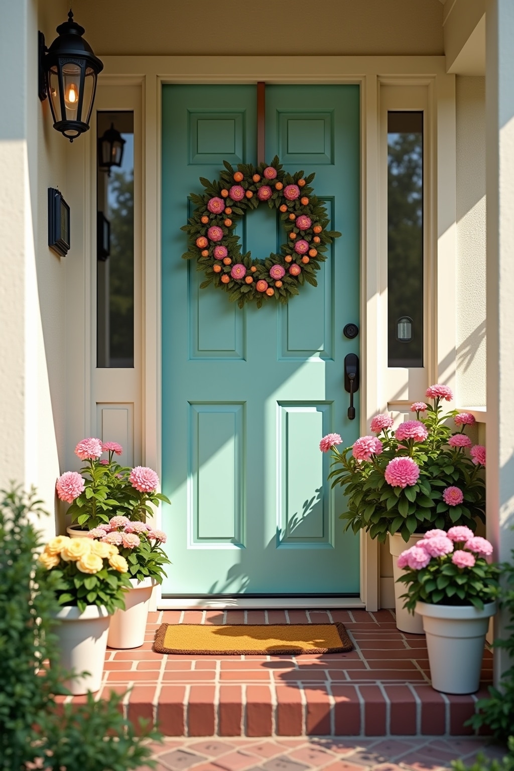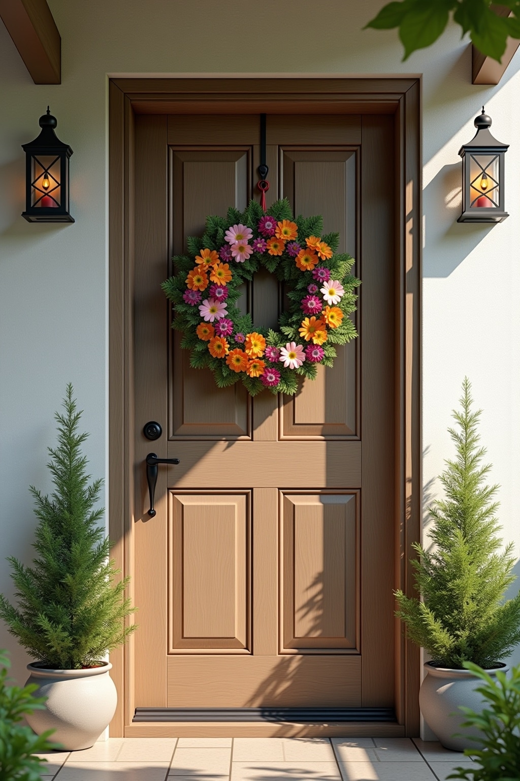 2. Einen farbenfrohen Türkranz aus Kunstblumen oder frischen Zweigen anbringen