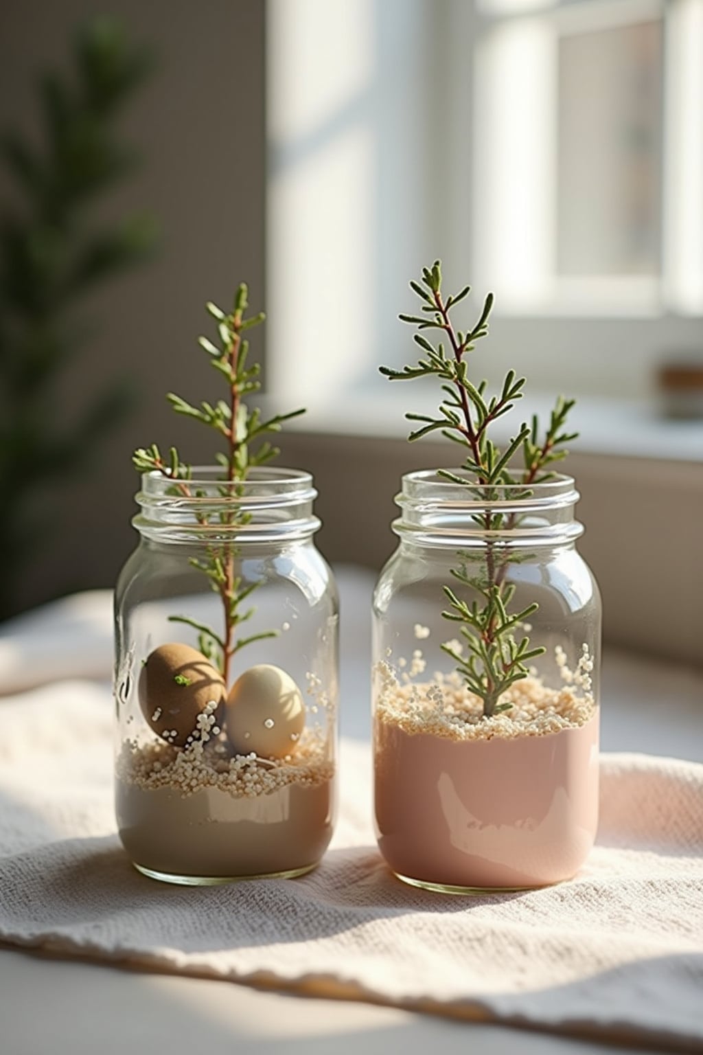 – Natürliche Materialien wie Moos und Zweige zu kleinen „Frühlingsgärten“ arrangieren