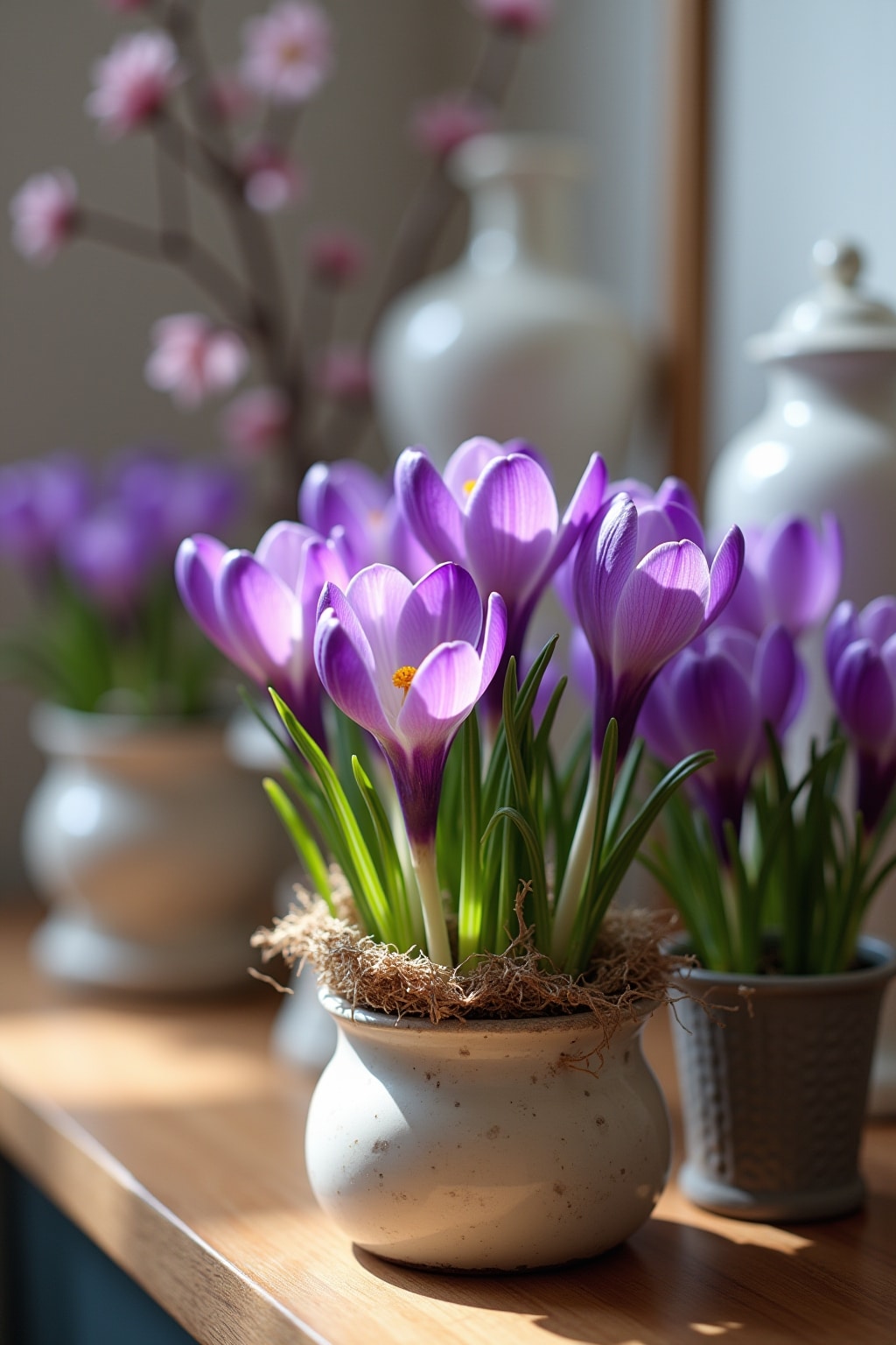Farbenfrohe Krokus-Arrangements als Blickfang im Frühling
