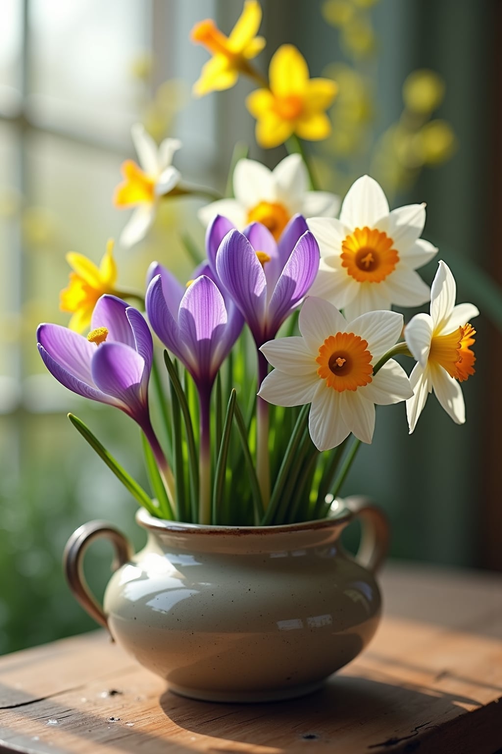 10. Krokusse und Narzissen in einem Korb kombinieren