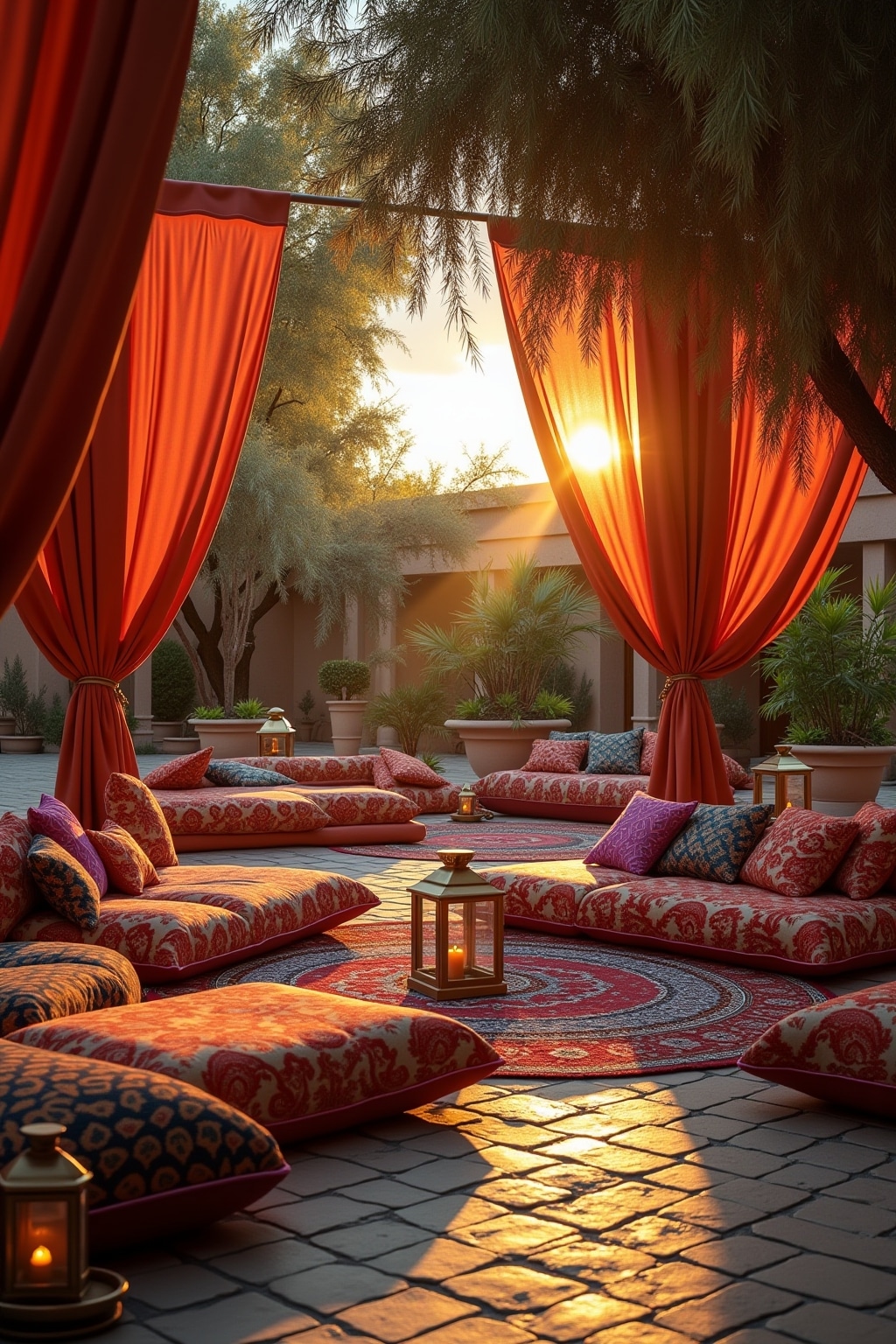 Textilien und Stoffe im türkischen Garten: Dekorative Akzente mit Kissen und Teppichen