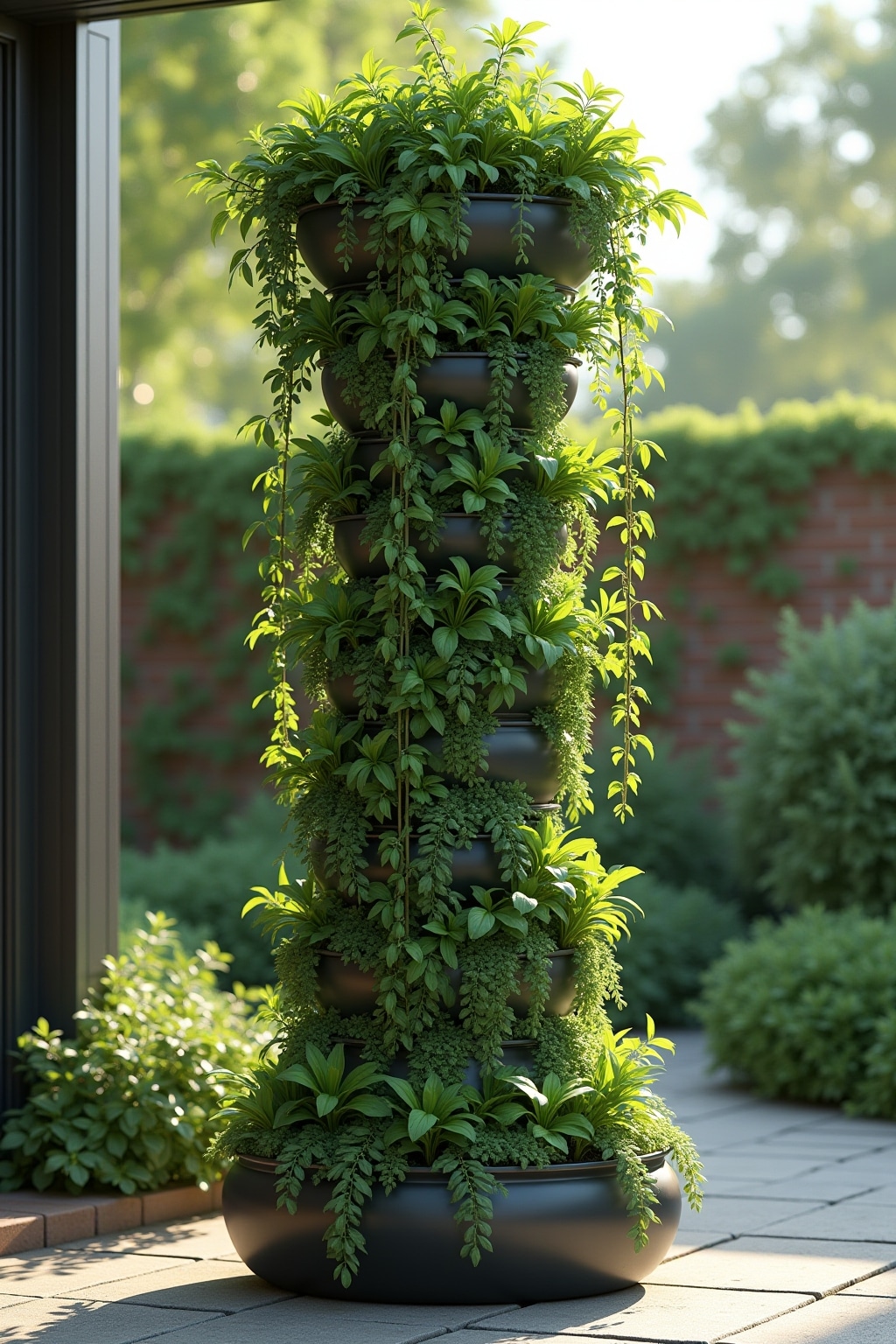 17. Mehrstöckige Pflanzturm-Systeme mit integrierter Bewässerung installieren