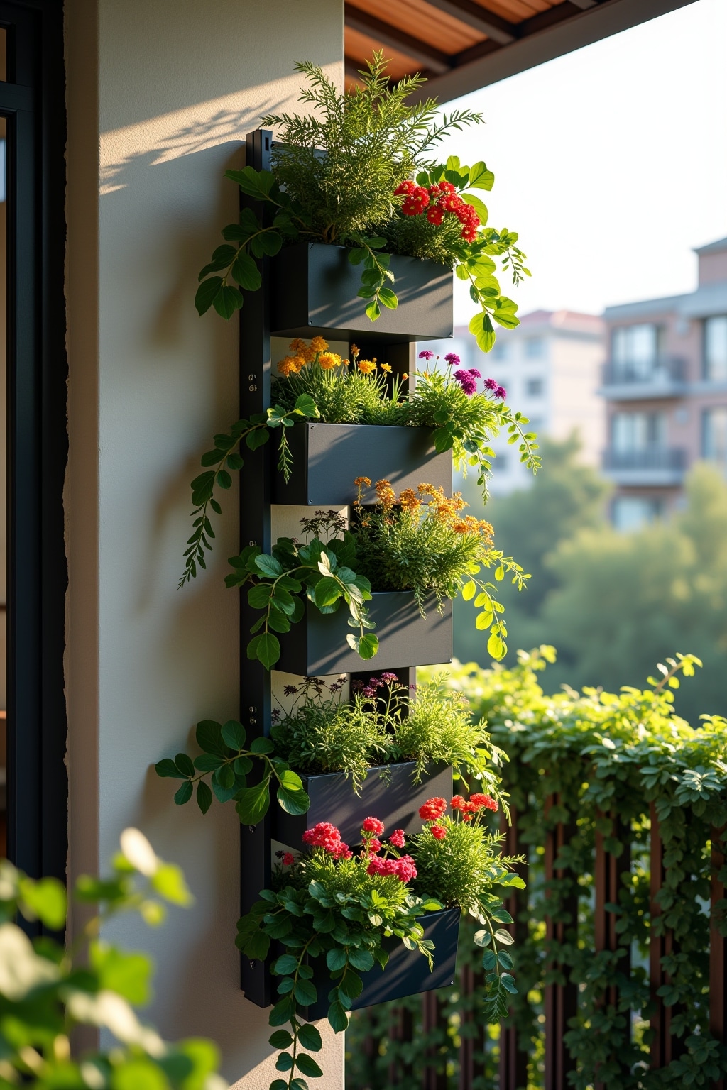 25. Vertikale Rankhilfen aus Metall oder Holz mit integrierten Pflanztaschen kombinieren