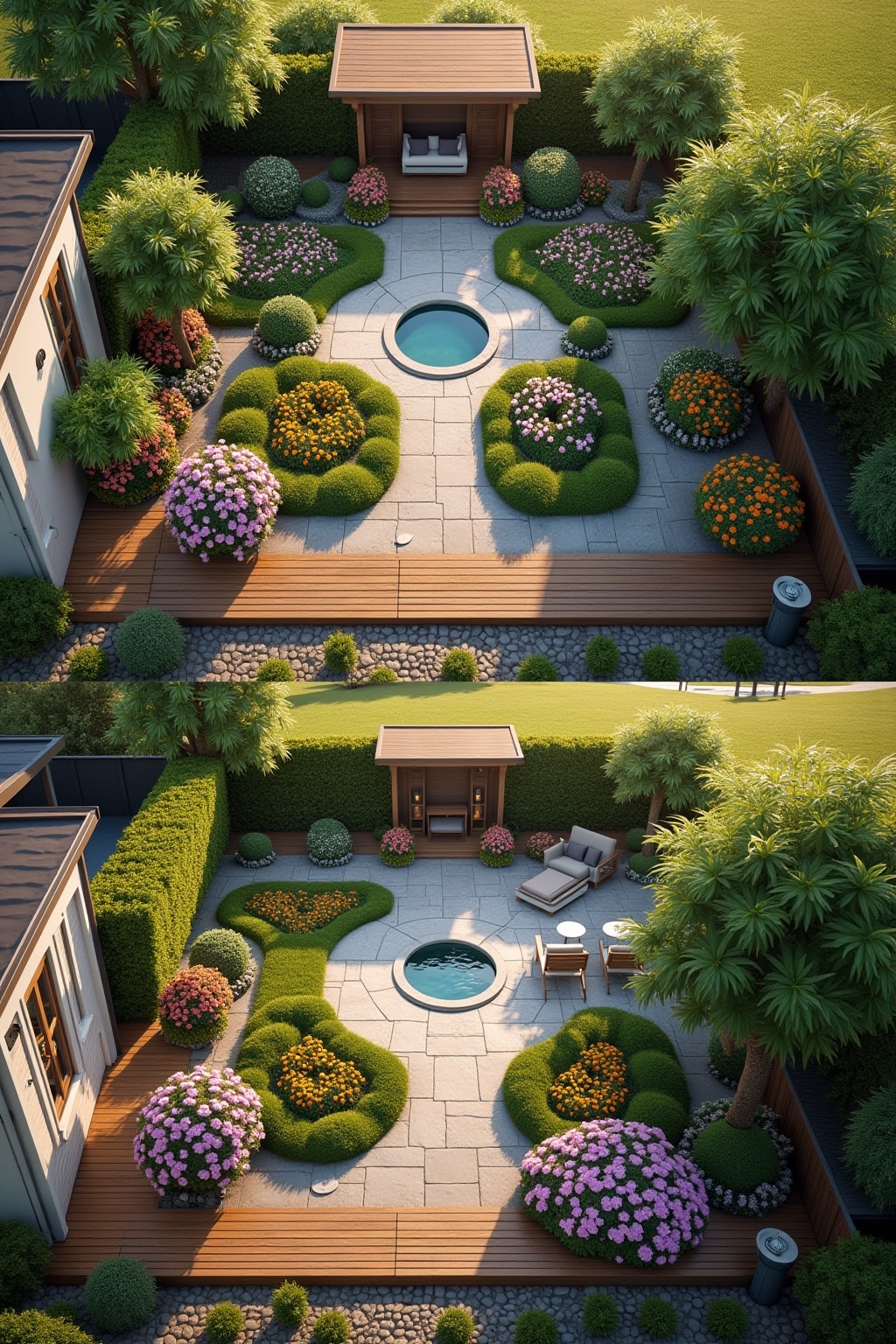 Entdecken Sie 9+ inspirierende Gartenoasen Bauideen, die Ihren Außenbereich in ein wahres Freiluft-Paradies verwandeln. Von maßgeschneiderten Terrassenkonzepten über entspannende Lounge-Bereiche bis hin zu naturnahen Wasserspielen – wir präsentieren Gestaltungsmöglichkeiten, die Ihren Garten in eine persönliche Wohlfühloase verwandeln. Mit unseren durchdachten Landschaftsgestaltungsideen schaffen Sie nicht nur einen optischen Blickfang, sondern einen funktionalen Outdoor-Wohnraum, der zum Verweilen und Genießen einlädt.
