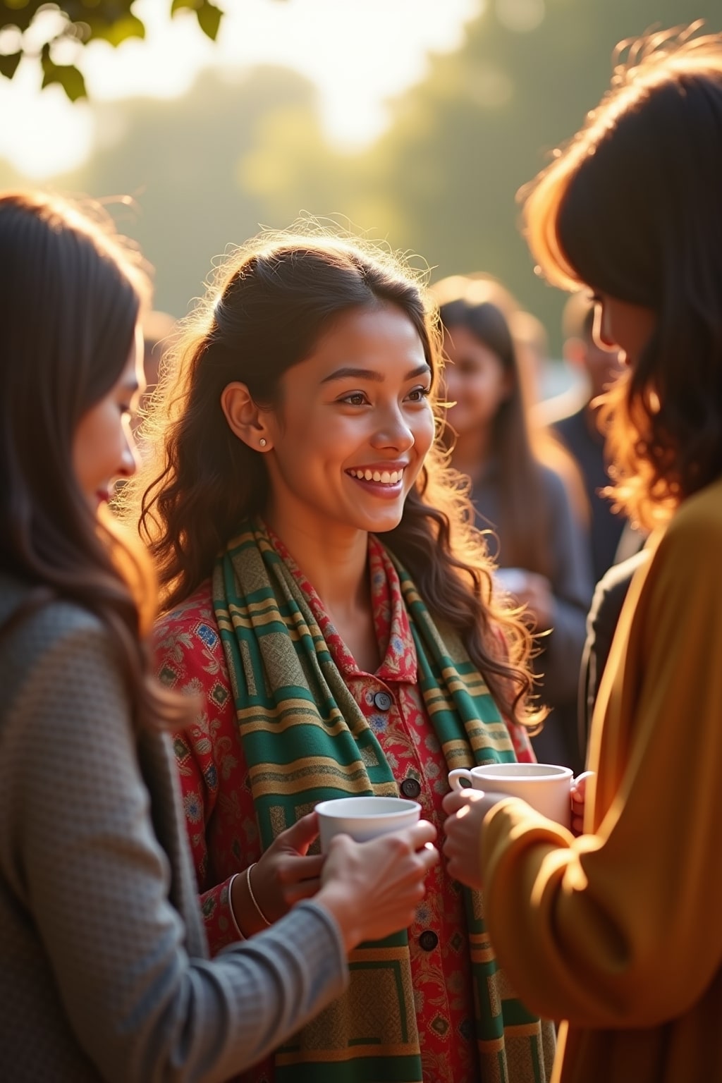 3. Brazilian friends greeting with enthusiastic „Bom dia“ hugs that reflect their expressive culture