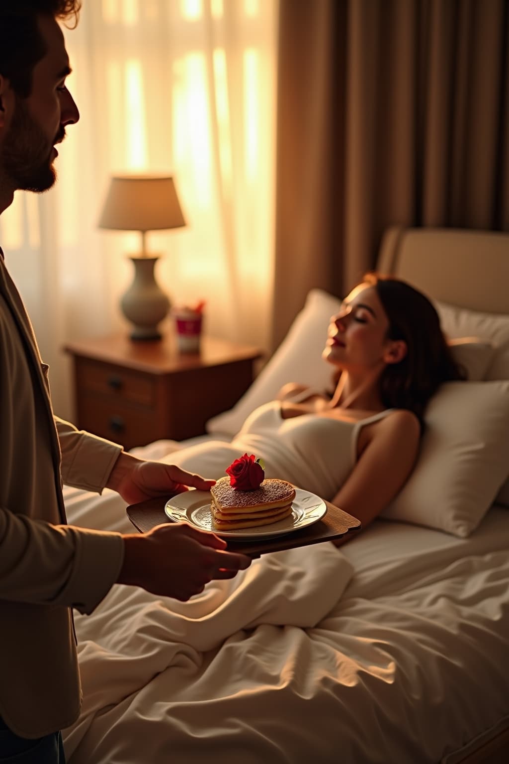 2. Breakfast in bed with a handwritten quote on the napkin or tray