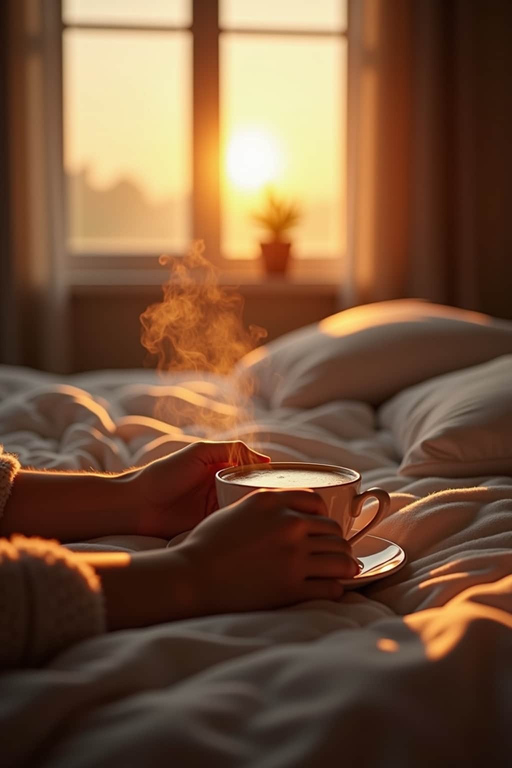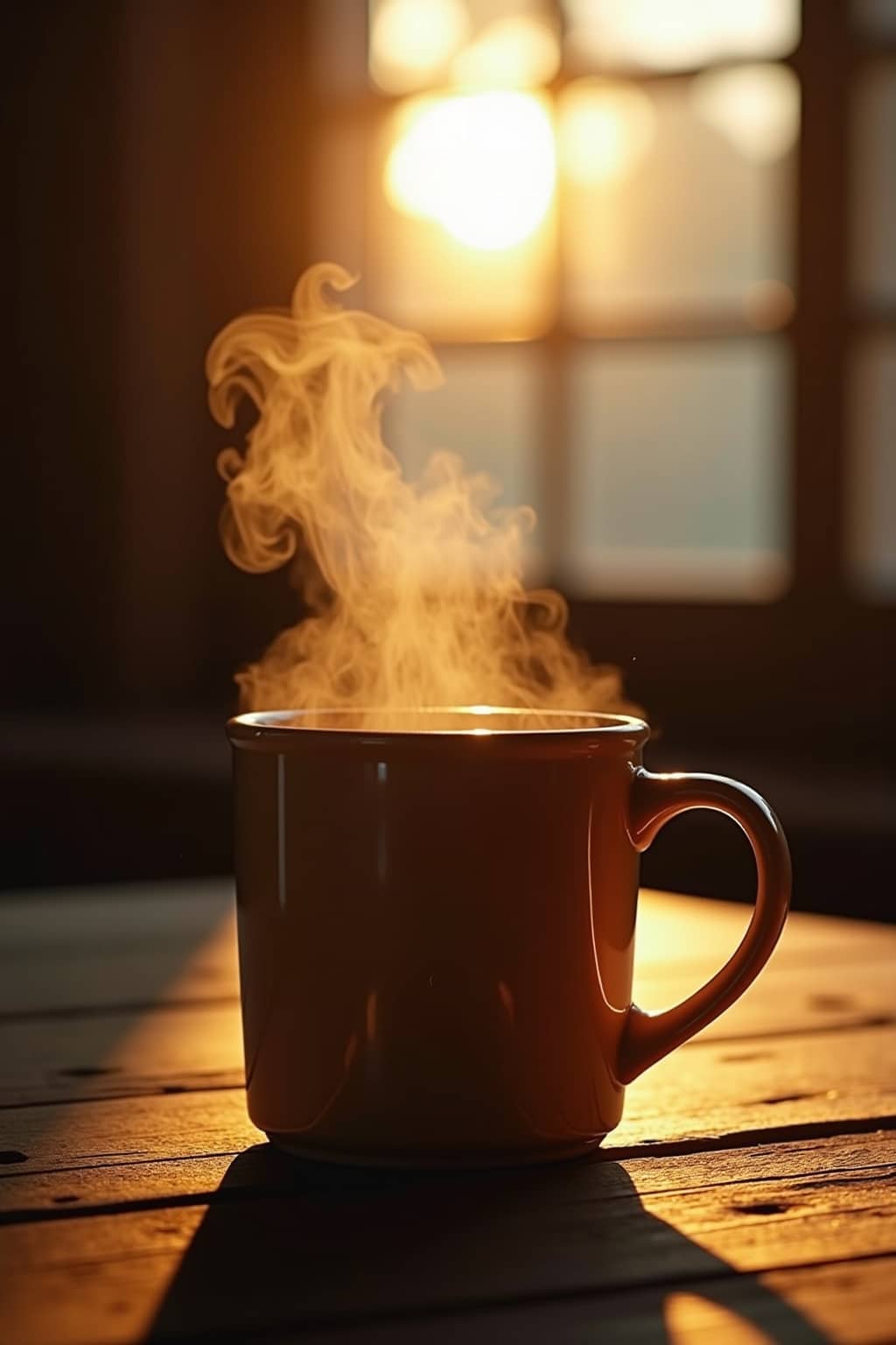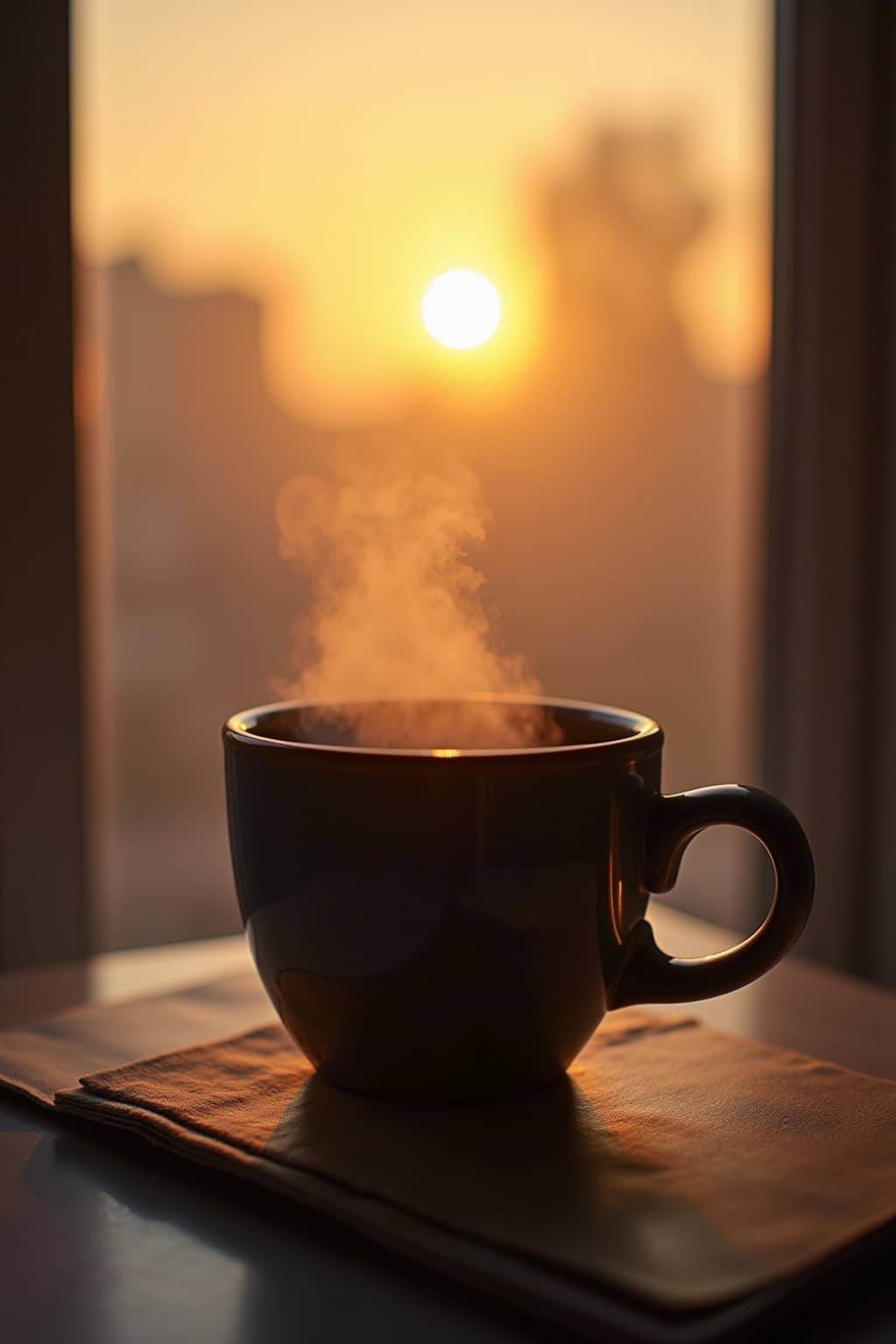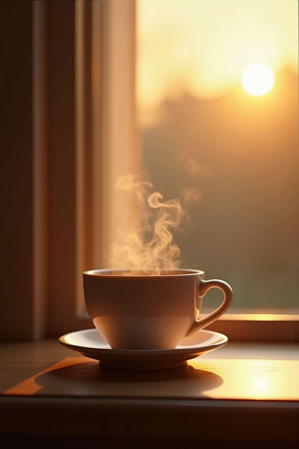 5. „Meine Morgenmeditation: Augen geschlossen, Tasse in der Hand, Gedanken klar wie frisch gebrühter Kaffee.“
