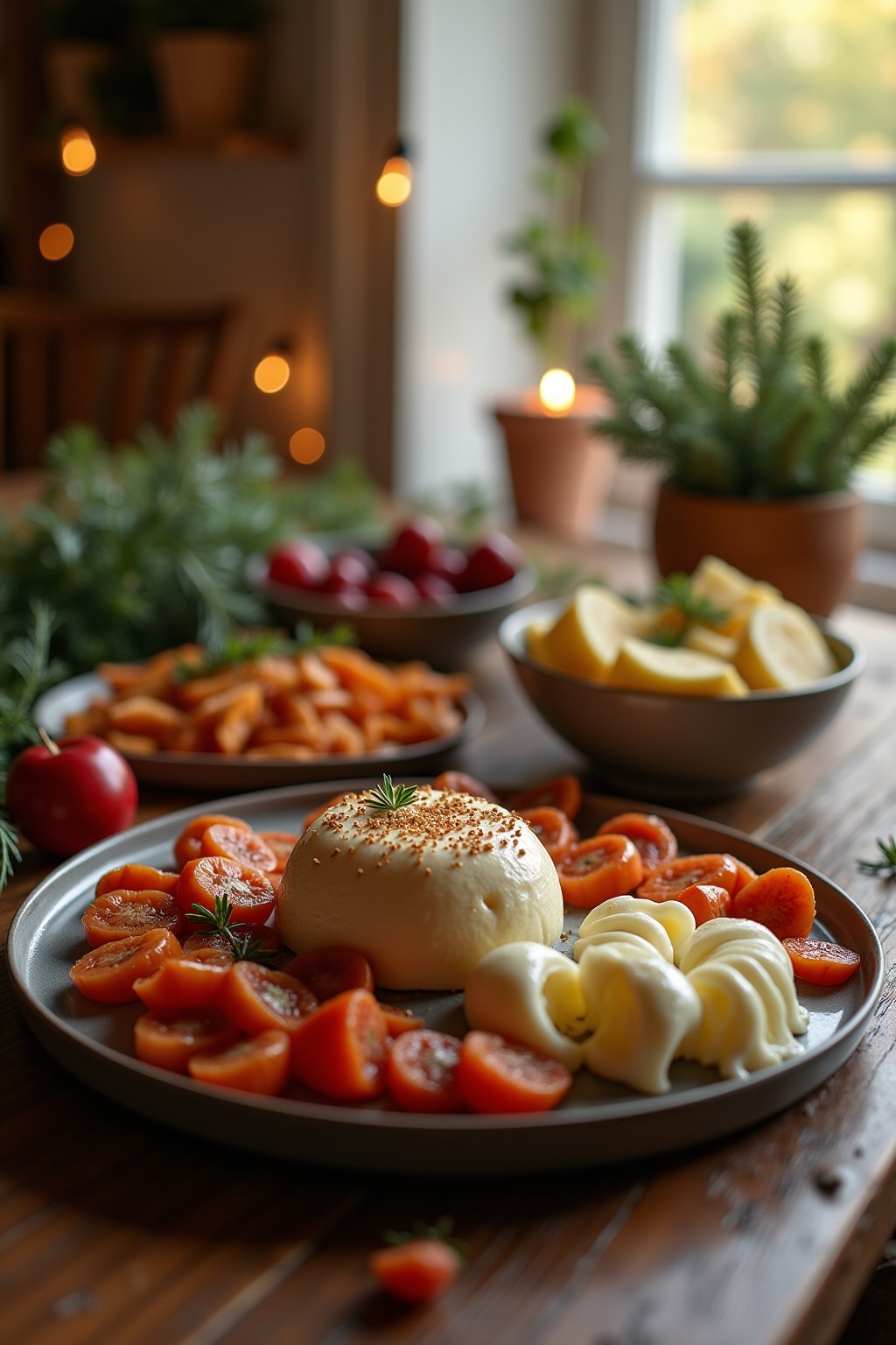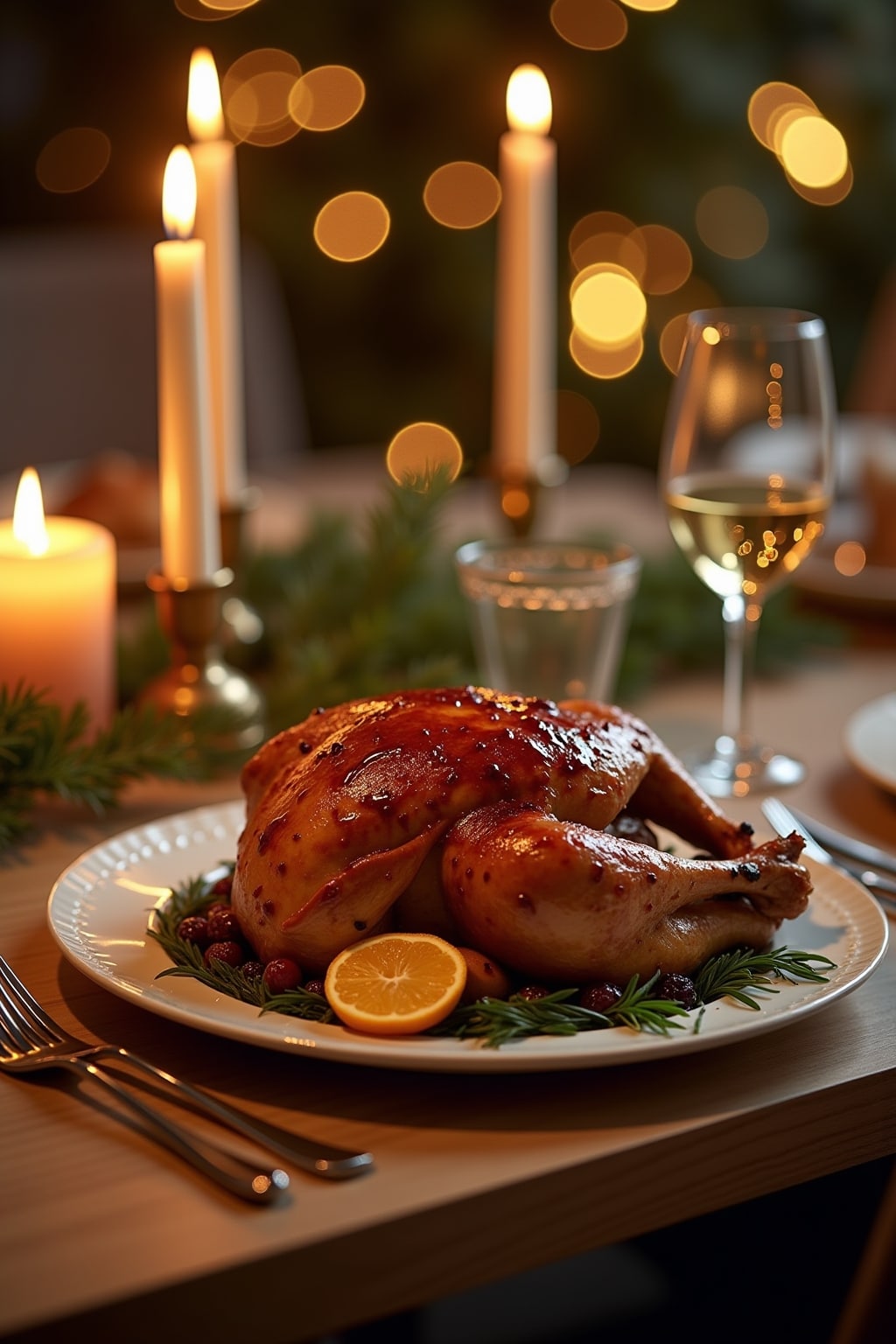 8. Include seasonal garnishes on plates like rosemary sprigs, cranberries, or citrus slices