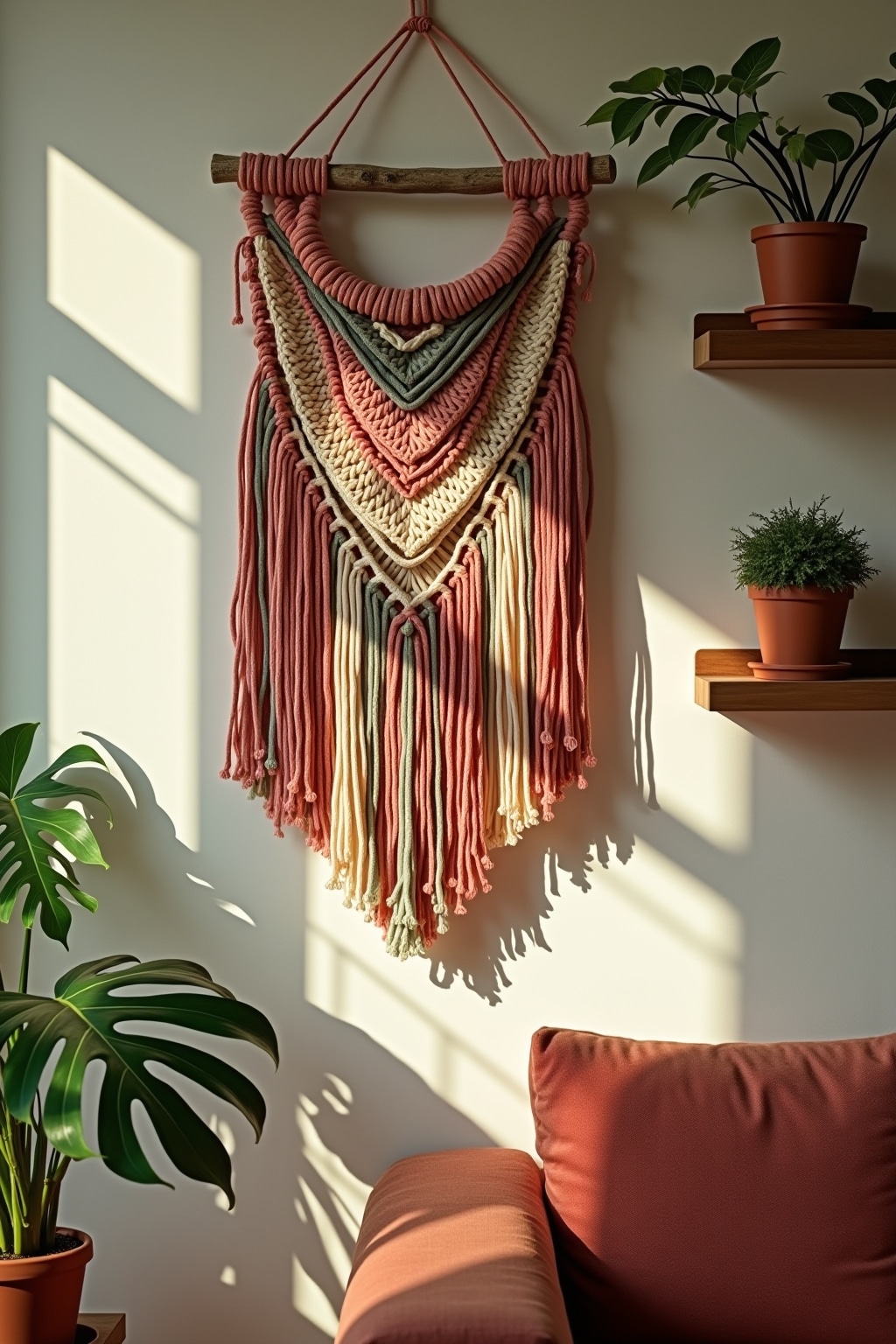6. Construct a room divider from macramé and driftwood
