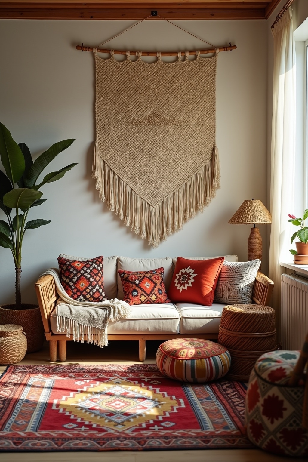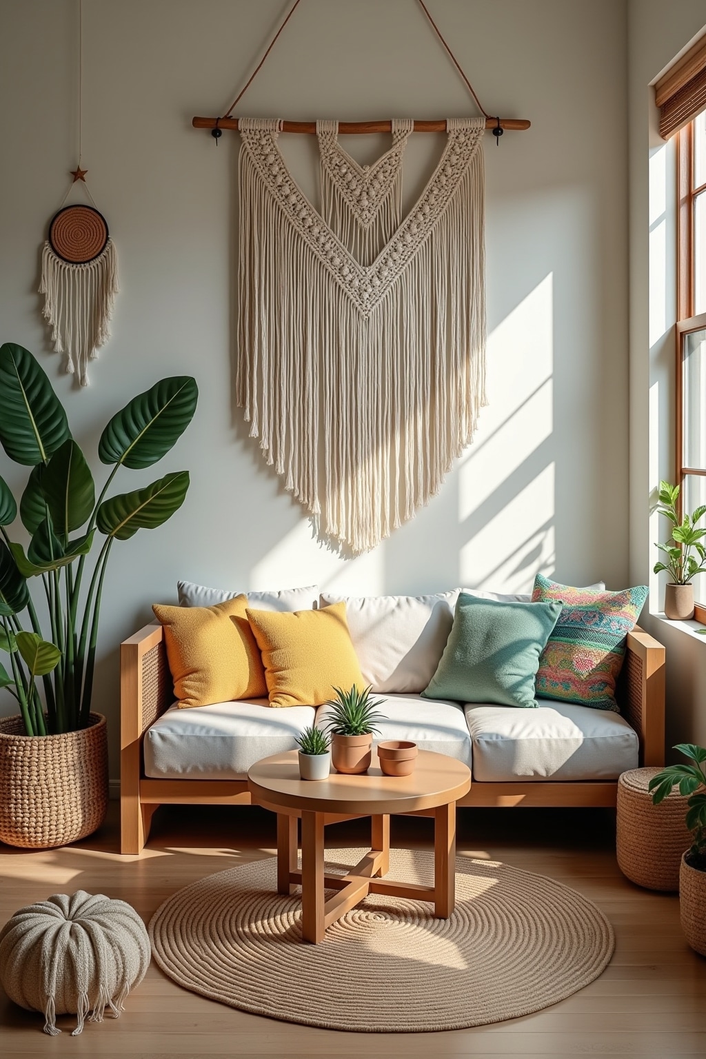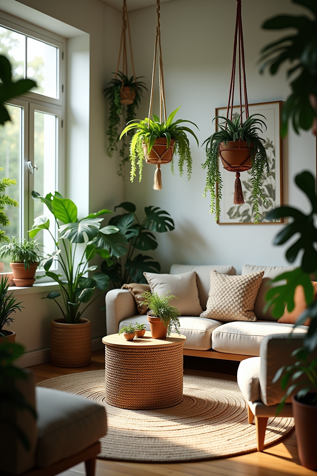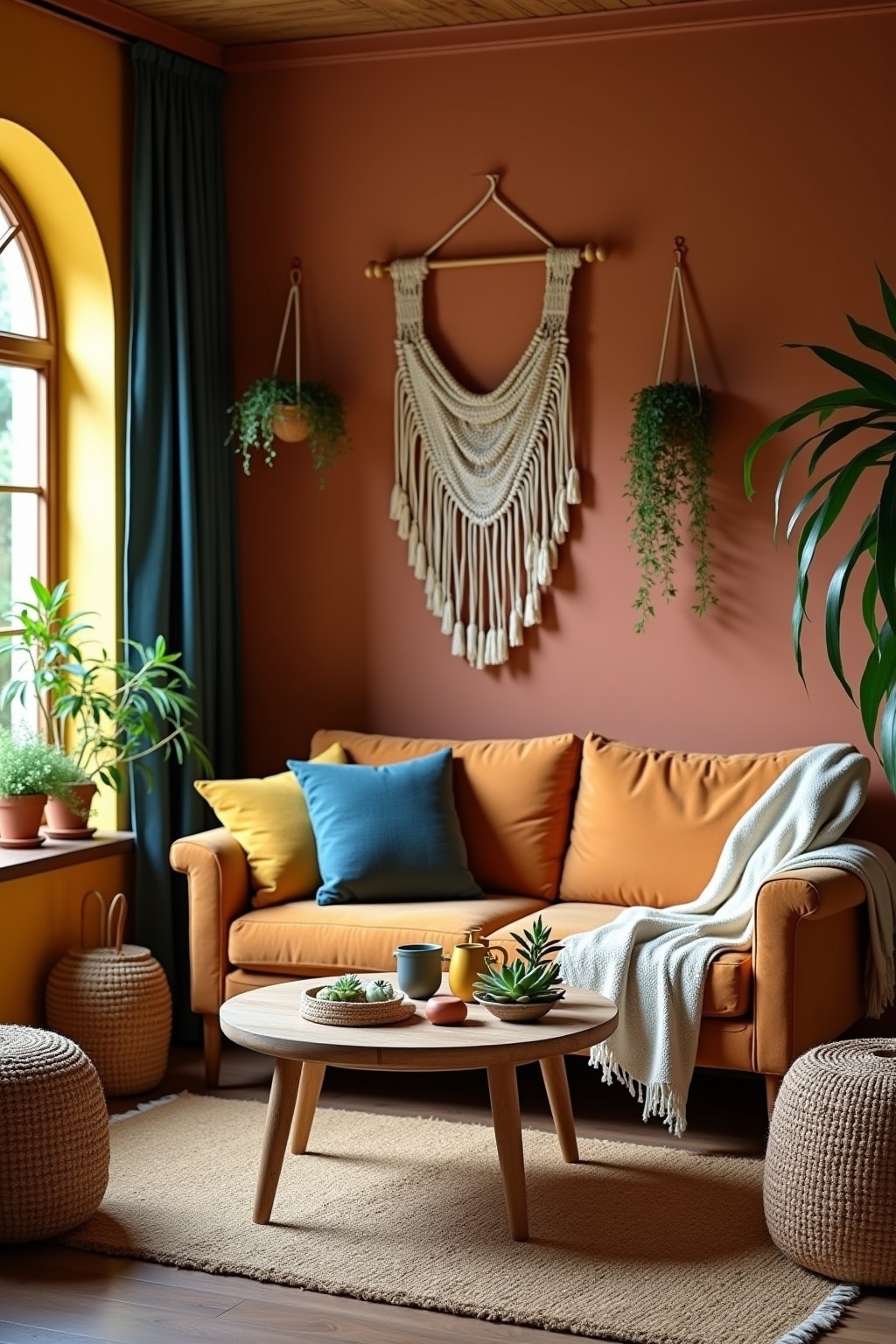 5. Add macramé wall hangings or plant holders for dimensional textile interest