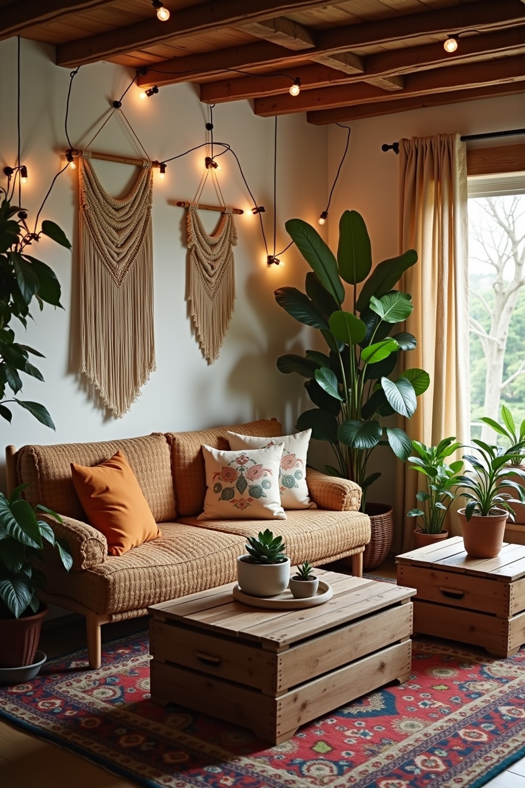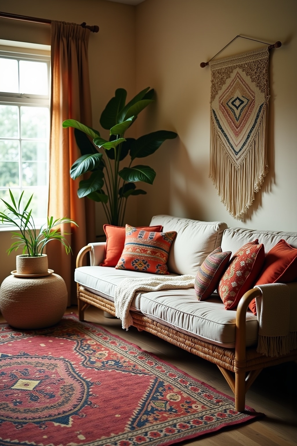 1. Incorporate macramé wall hangings, plant hangers, and dream catchers for authentic boho texture and visual interest