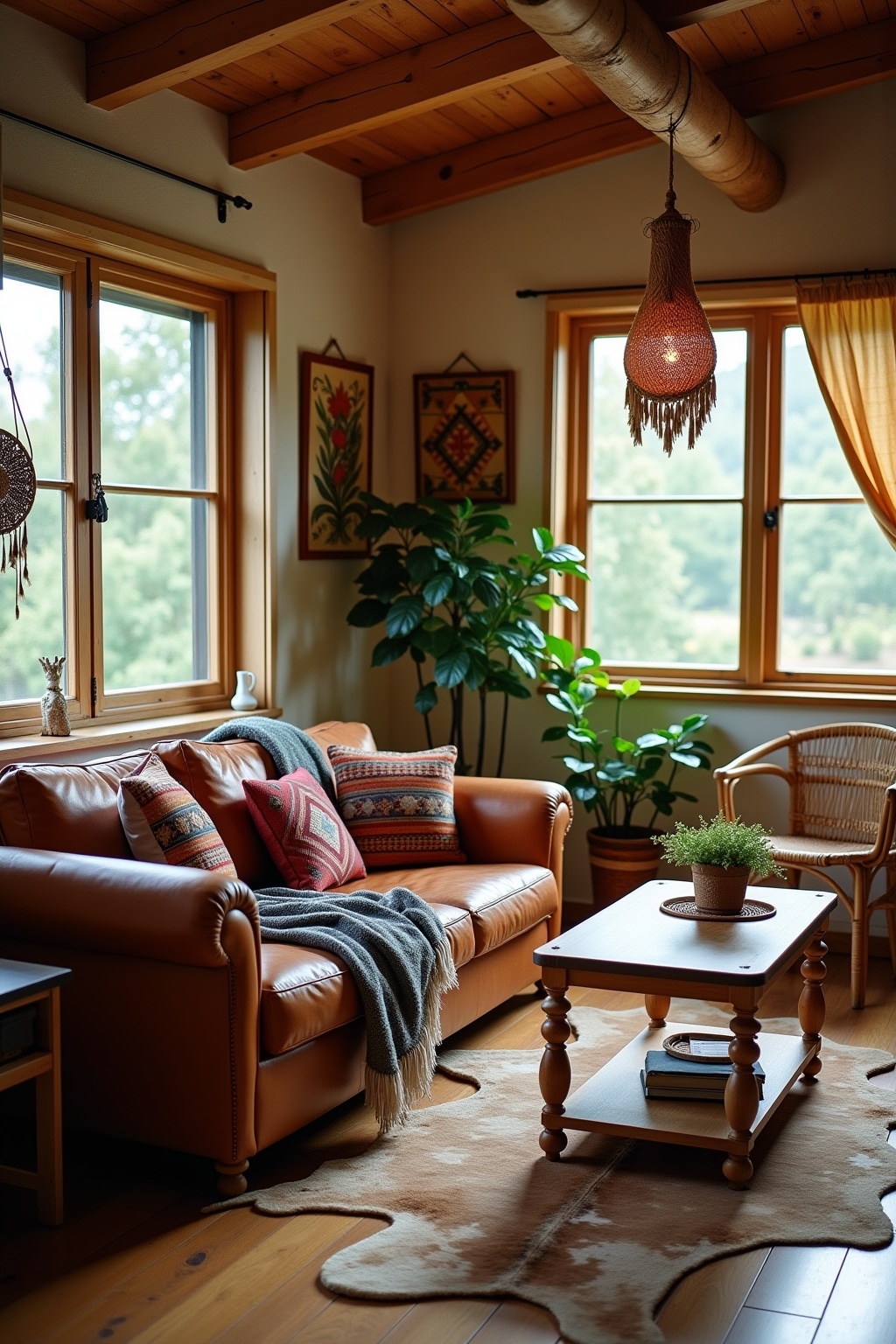 1. Incorporate handcrafted textiles like Navajo-inspired rugs layered with Moroccan throws