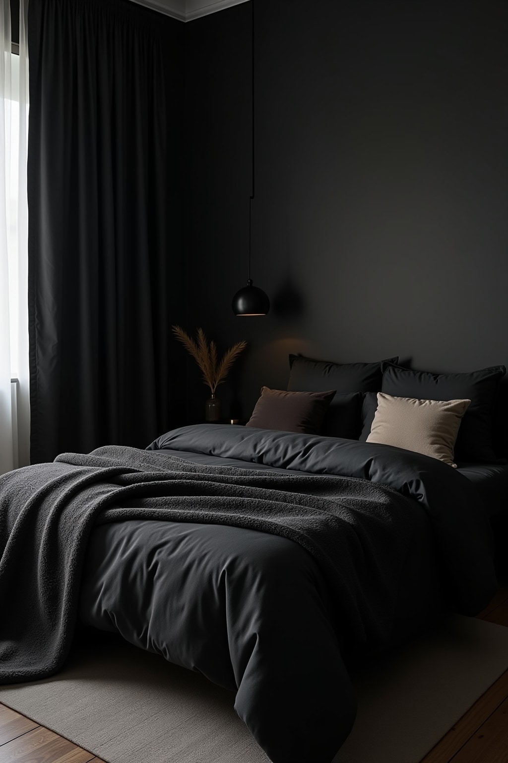 2. Layer different textile textures in similar dark tones for depth without chaos