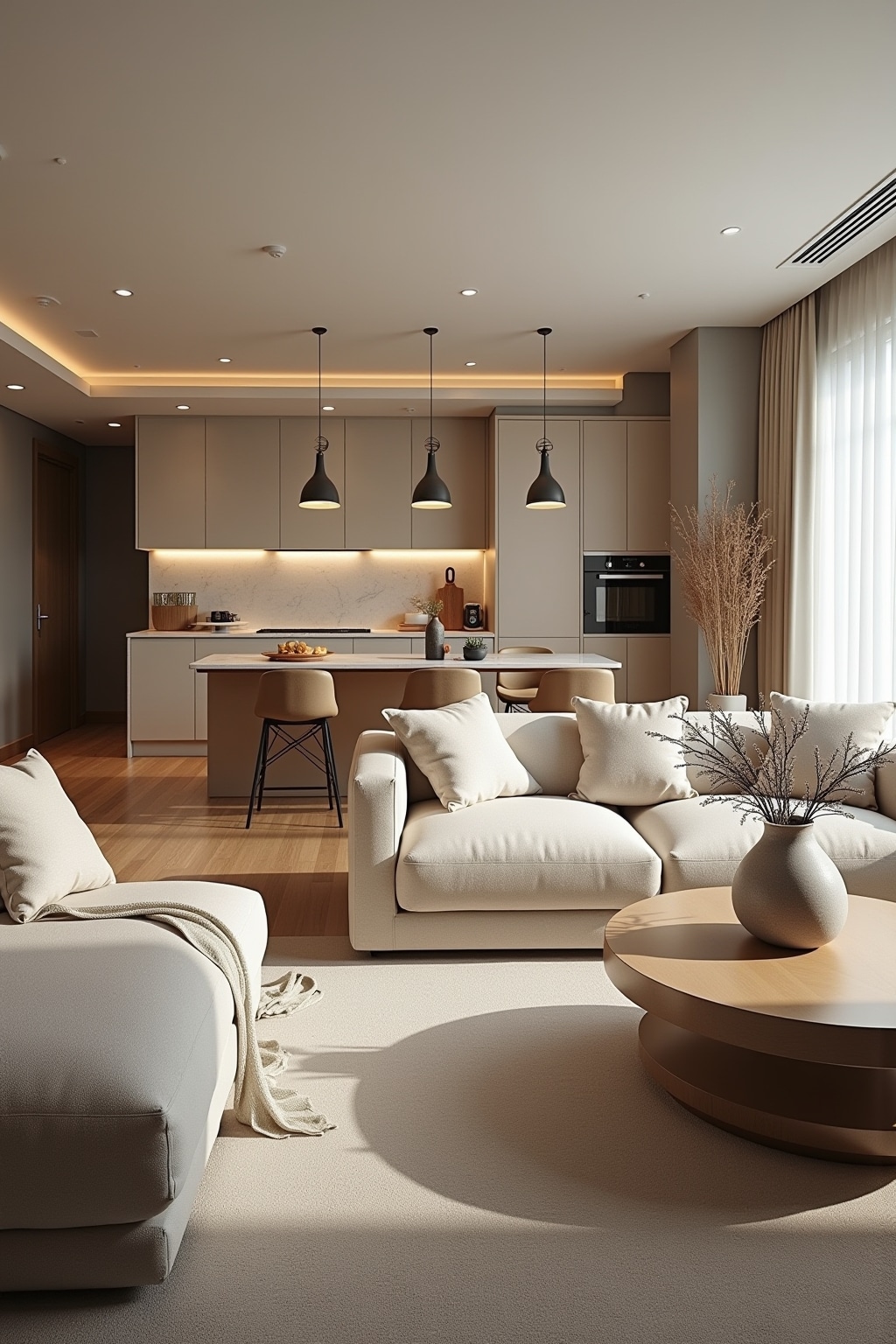 Creating a cohesive flow between your living room and kitchen areas is essential for a harmonious home design that feels intentional and well-curated. When these two central gathering spaces complement each other, your entire home achieves a sense of balance that enhances both functionality and aesthetic appeal. Start by establishing a consistent color palette that transitions smoothly between the two areas, perhaps using varying shades of the same color family or complementary tones that echo each other throughout both spaces. Consider how furniture placement can create natural pathways that guide movement between rooms while maintaining distinct zones for different activities. Lighting choices should be coordinated to create a unified ambiance, perhaps incorporating similar fixture styles or complementary designs that speak the same visual language. Textiles and accessories offer perfect opportunities to subtly link the spaces through repeated patterns, textures, or materials that appear in both rooms. The flooring transition between kitchen and living areas deserves special attention, as it can either emphasize separation or reinforce connection depending on your design goals.