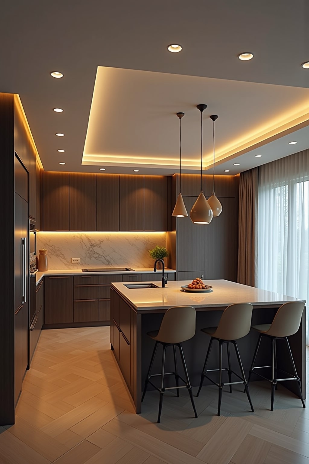 3. Under-cabinet LED strips to illuminate kitchen workspaces while adding a warm glow