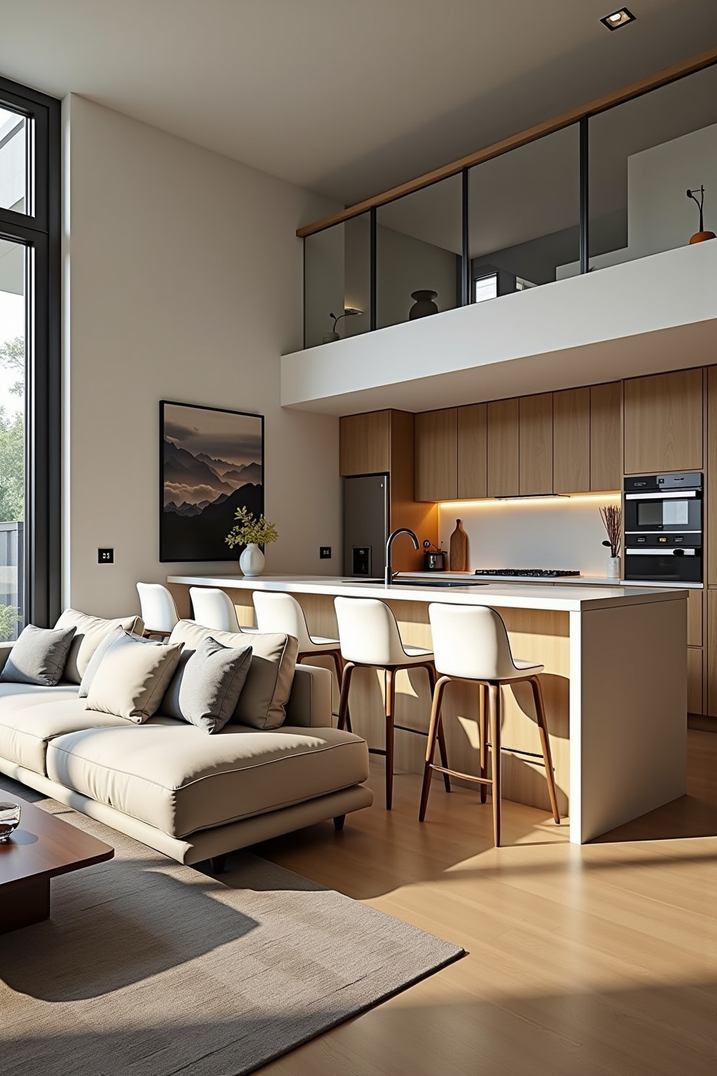 Space-Saving Home Decor Ideas for Connected Living Room and Kitchen Areas
