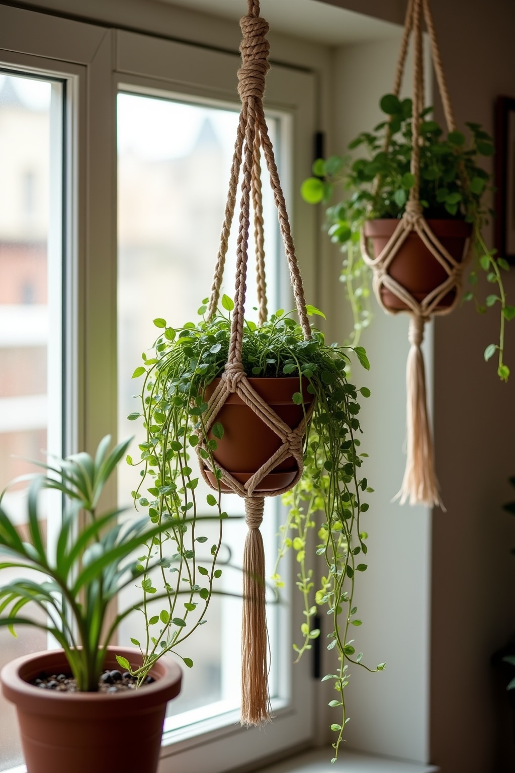 4. Position hangers near windows to create natural privacy screens with trailing plants