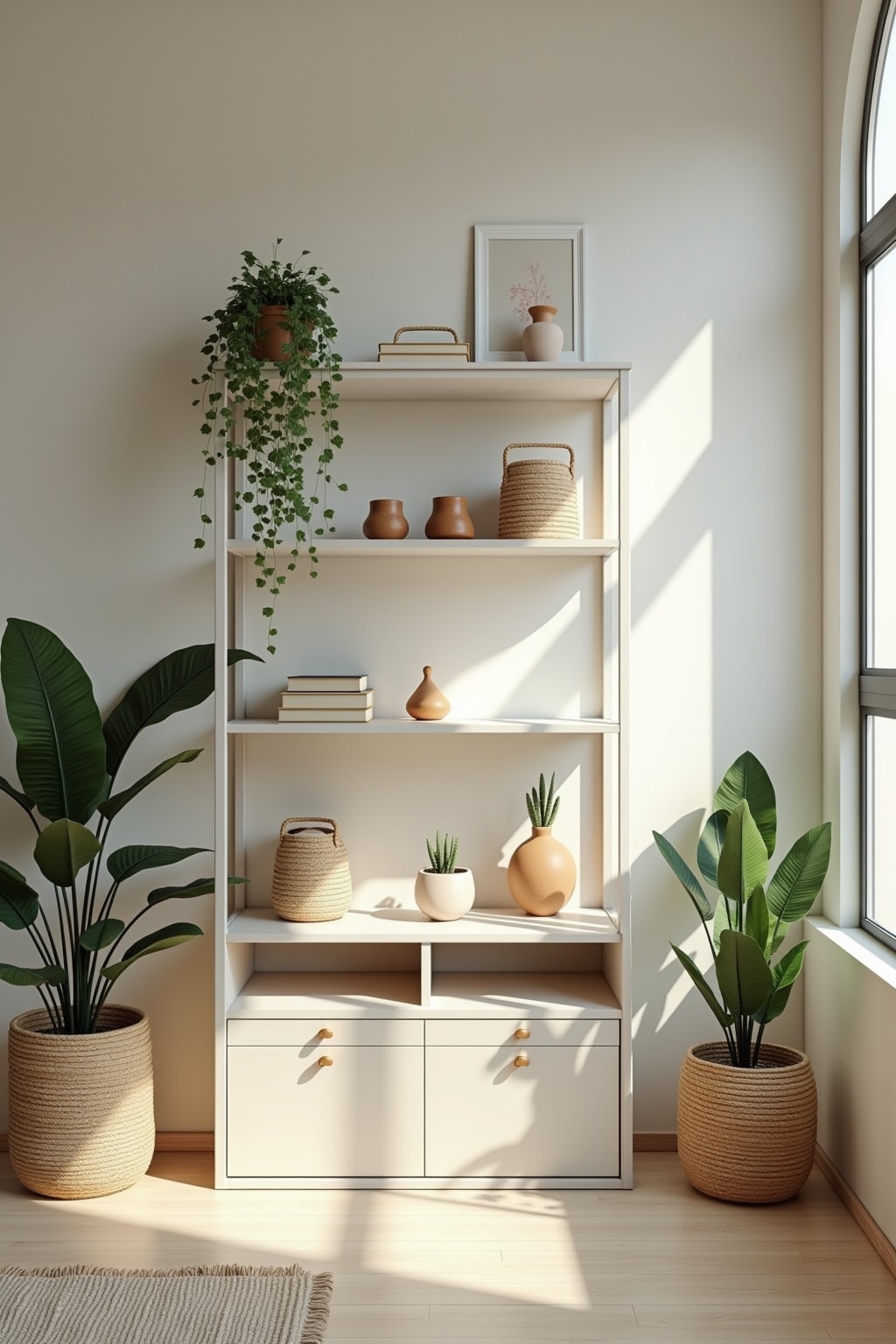 * Add dimension with textured ceramic vases or planters in neutral tones