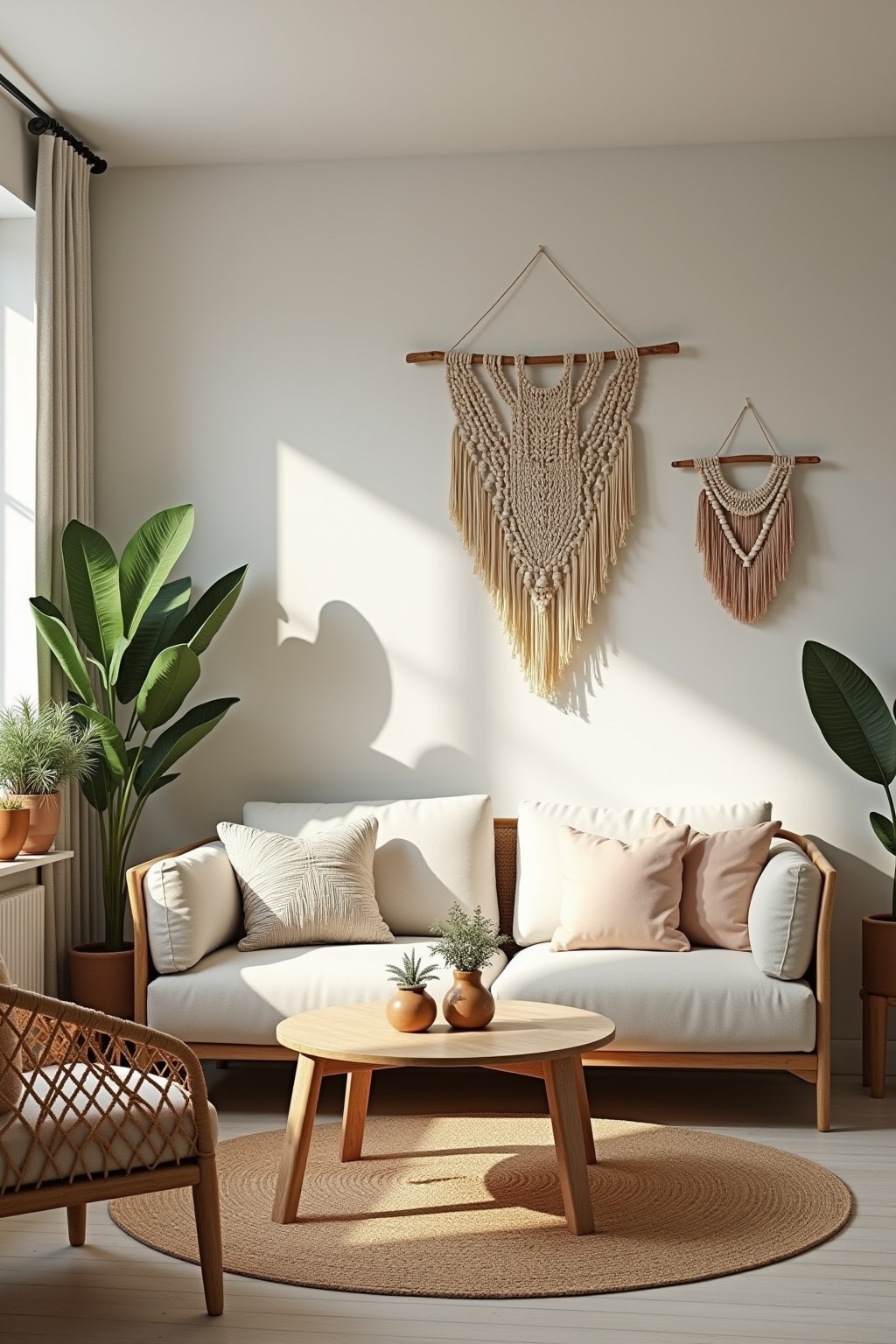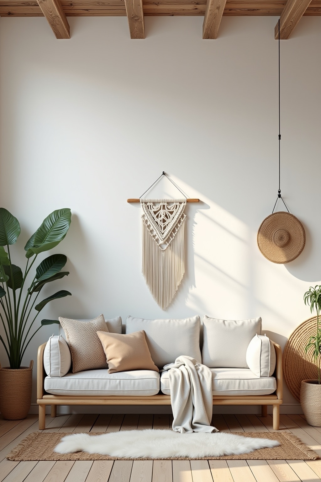 4. Keep walls white or neutral while adding interest through textural wall hangings