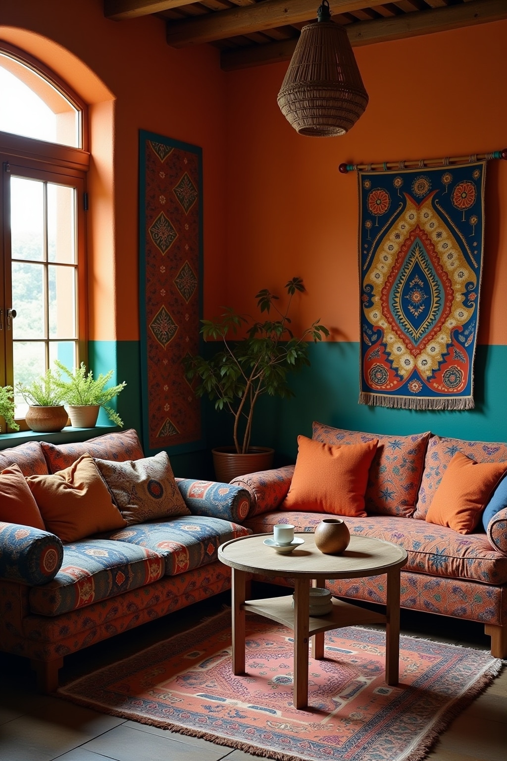 2. Incorporate a rich color palette featuring earthy tones with vibrant accents like terracotta, emerald, and mustard