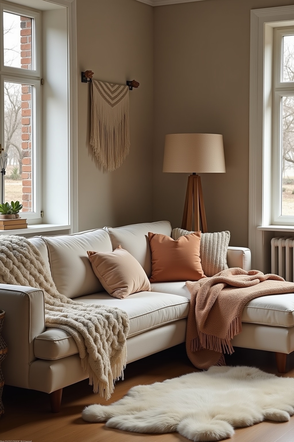1. Layer multiple textiles with varying textures for visual interest and tactile comfort