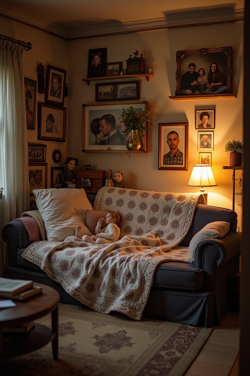 6. Layer handmade quilts or blankets from family members on sofas and beds