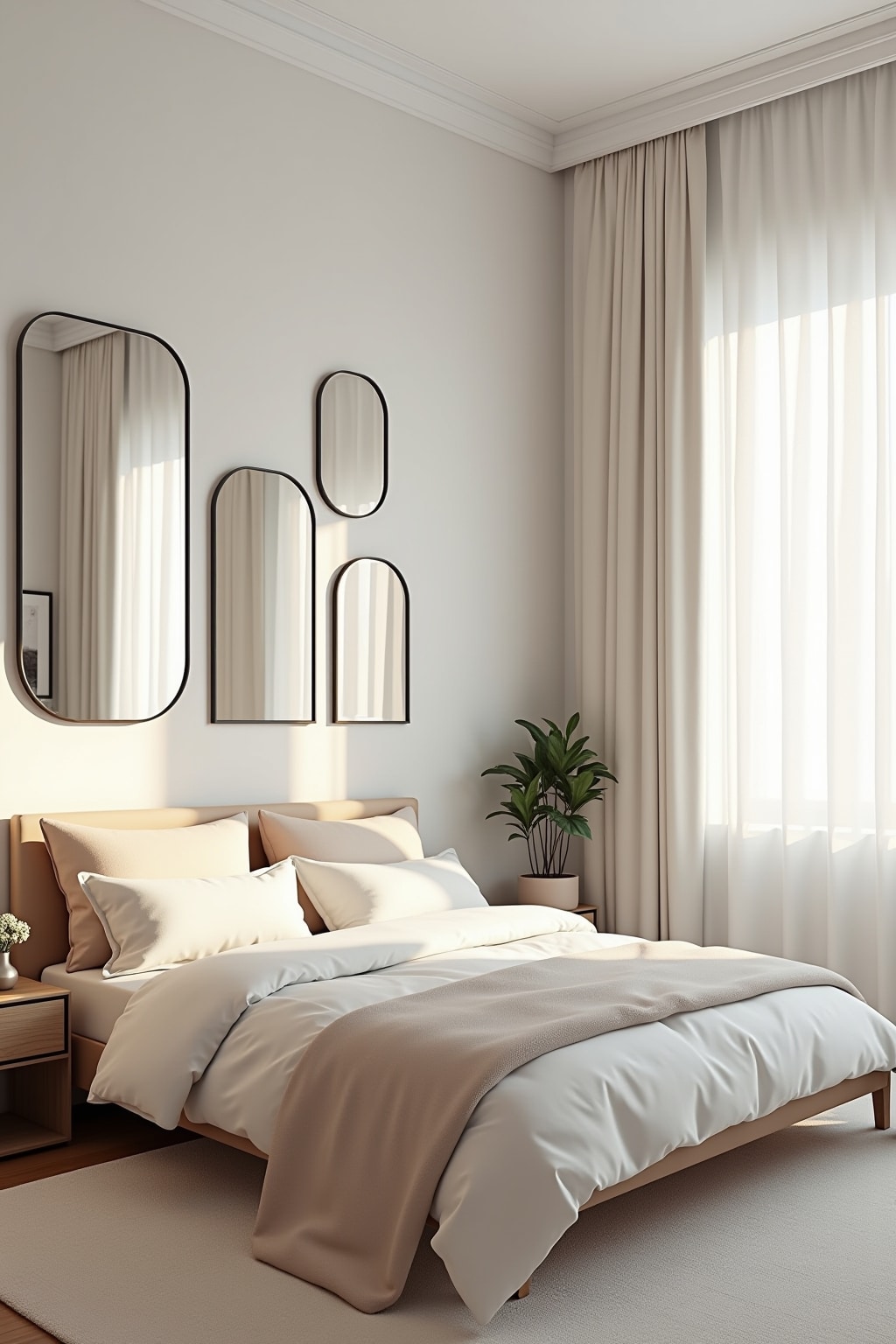 3. Hang large mirrors to create depth and reflect natural light