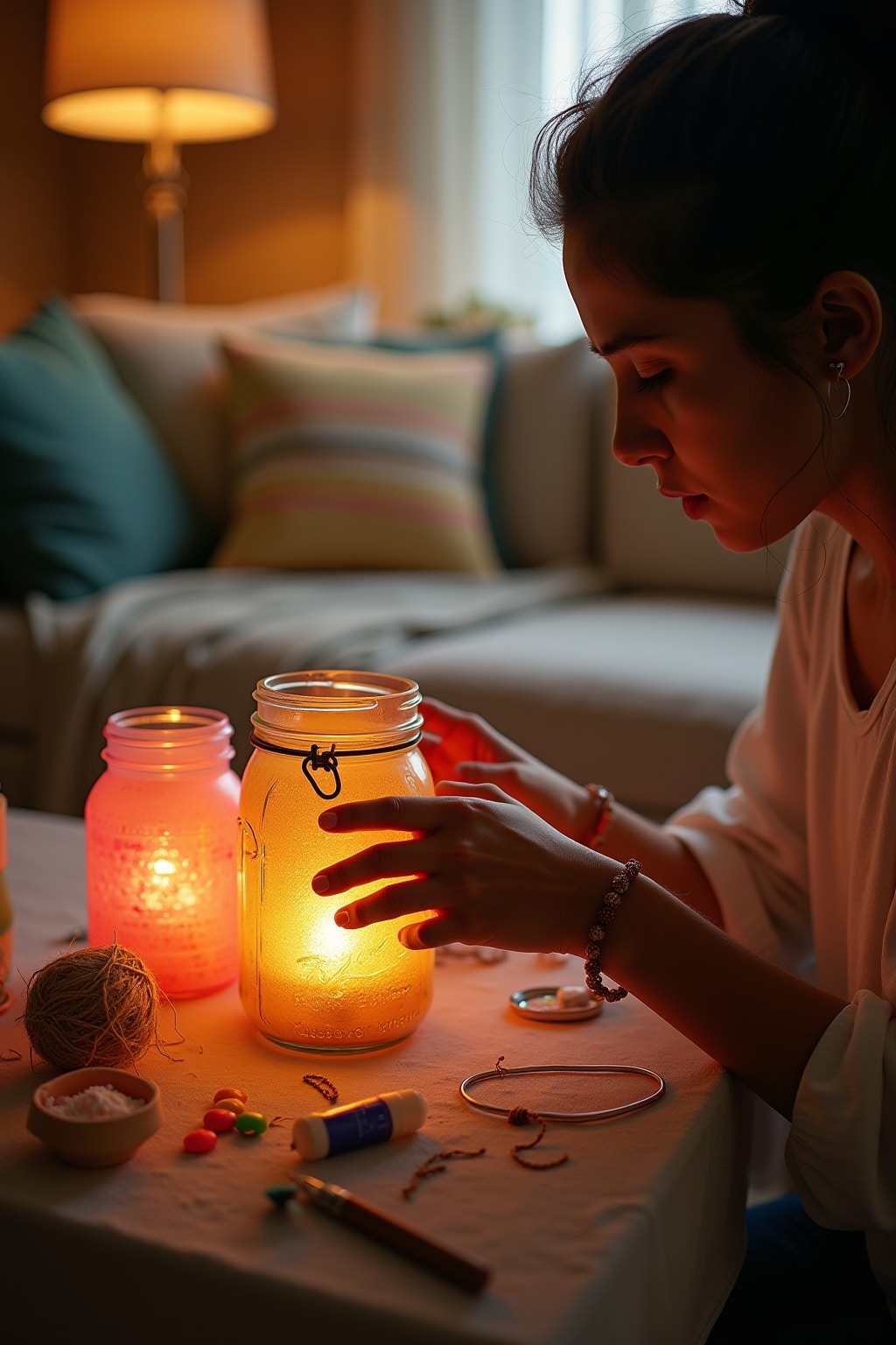 8. Create mood lighting with handmade lampshades, candle holders, or string light projects