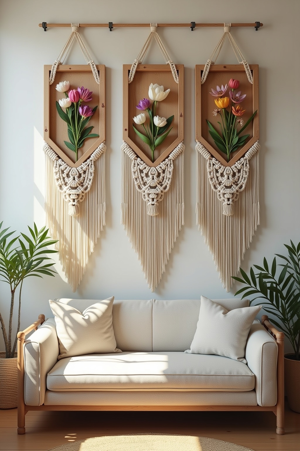 1. Makramee-Wandbehänge aus naturfarbenen oder gefärbten Baumwollseilen für einen Boho-Chic-Look