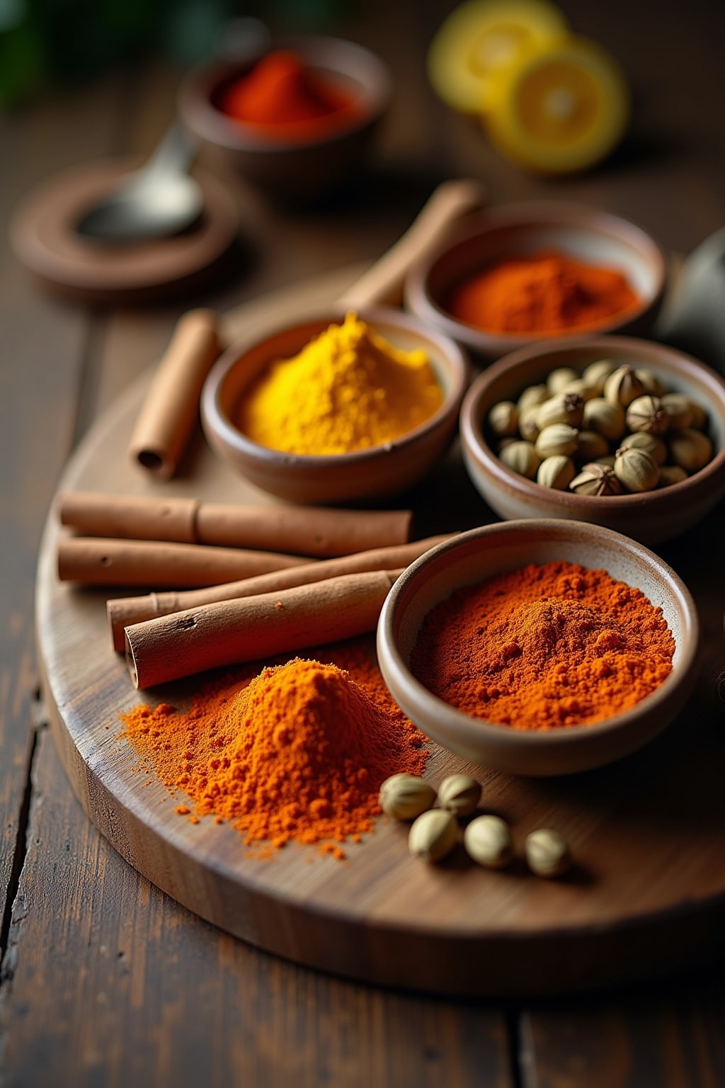 2. Ground spice powders (turmeric, red chili, coriander, garam masala)