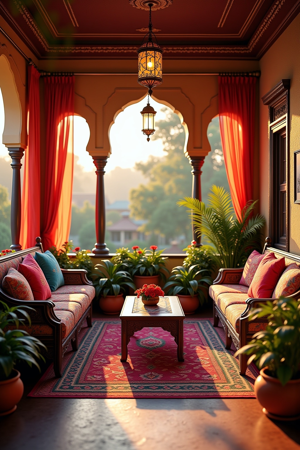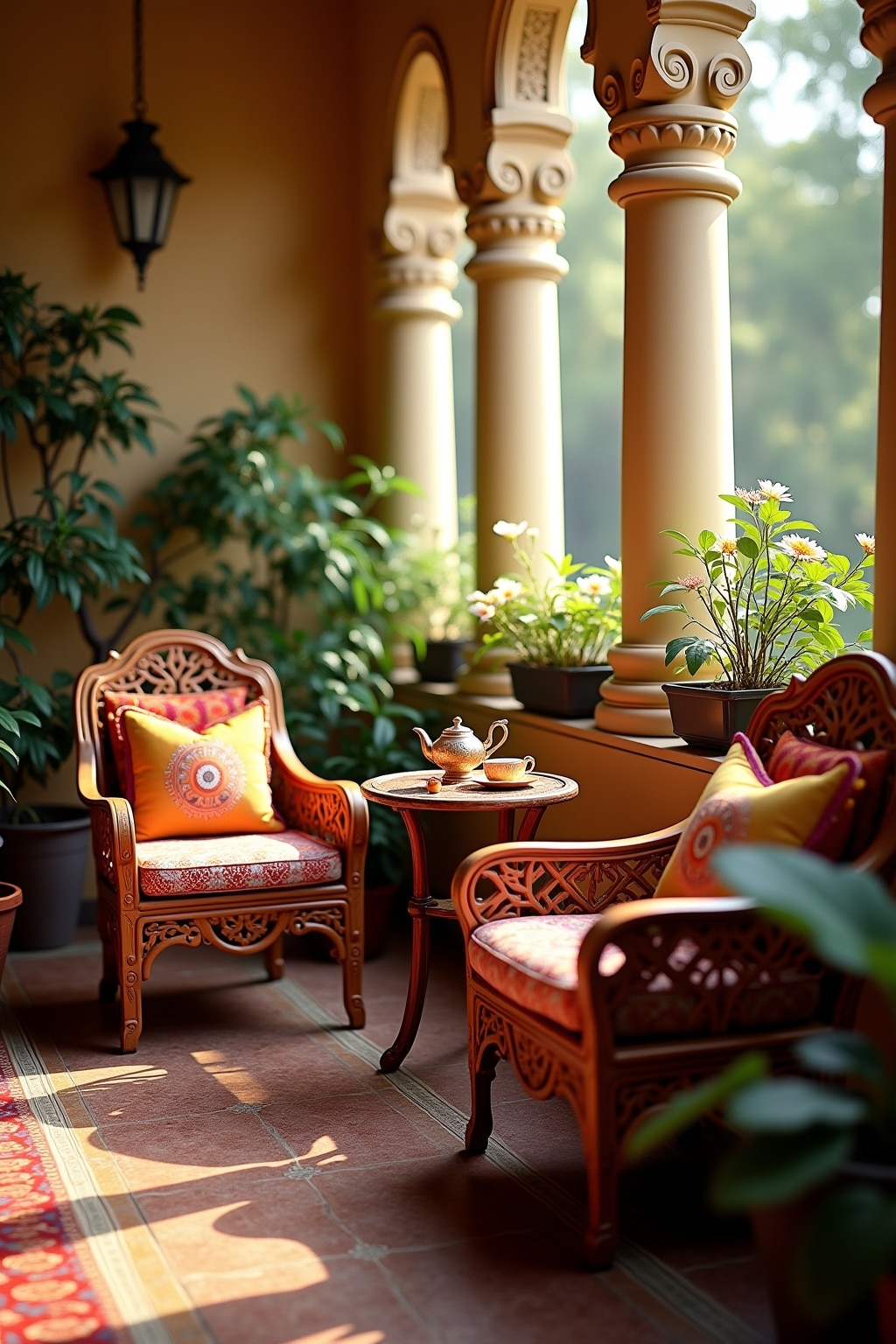 Traditionelle indische Balkonmöbel für gemütliche Sitzecken