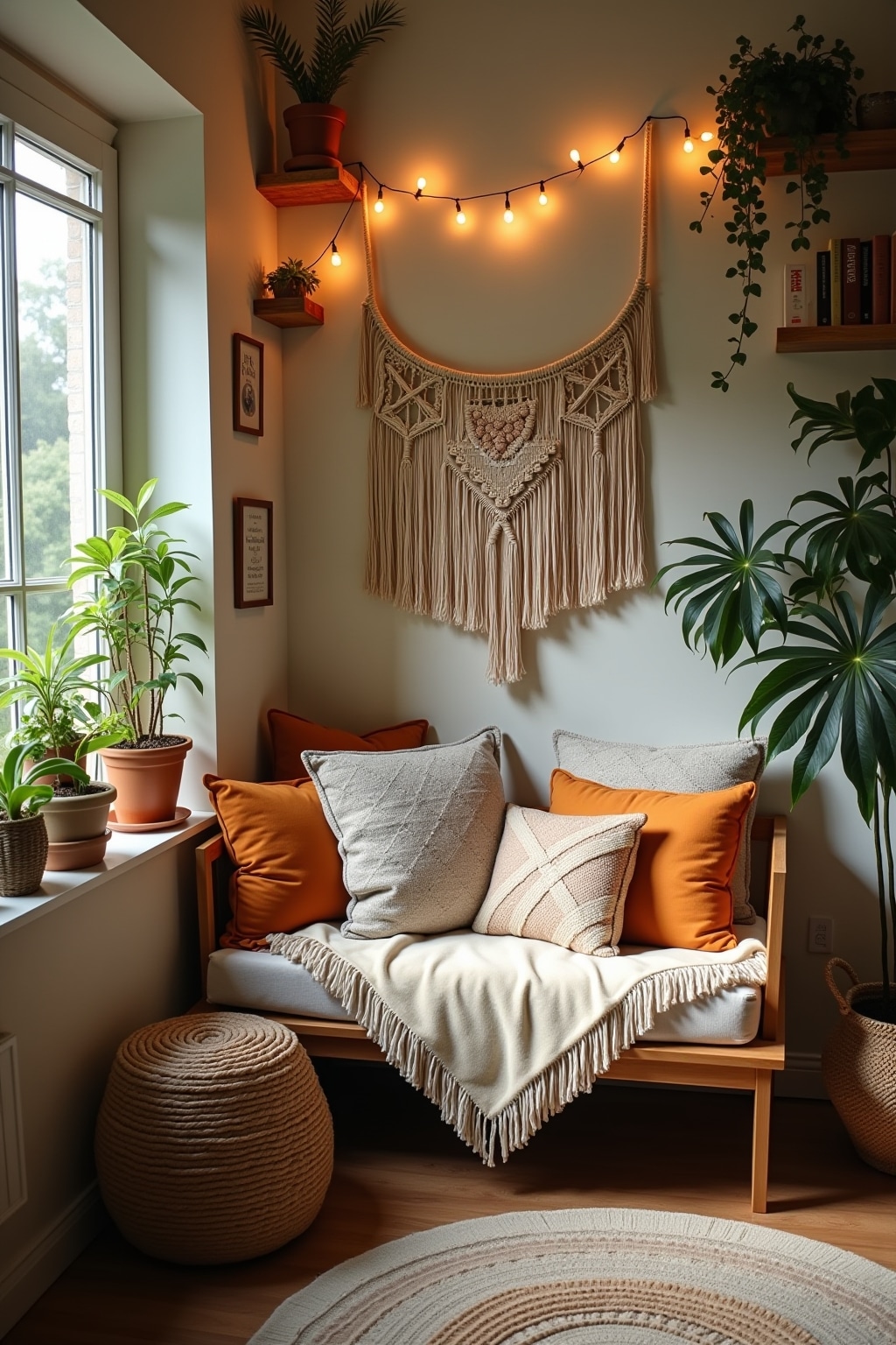 1. Makramee-Wandbehang mit integrierter Leselicht-Halterung