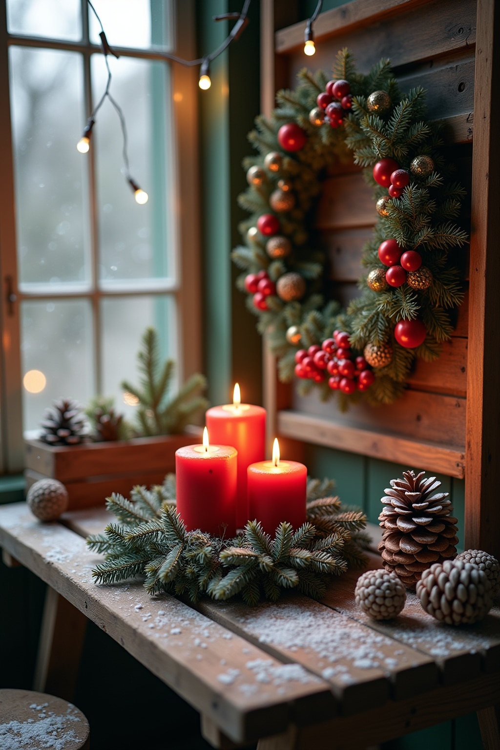 7. Frostfeste Topfarrangements mit Tannenzweigen, Beeren und Kerzen