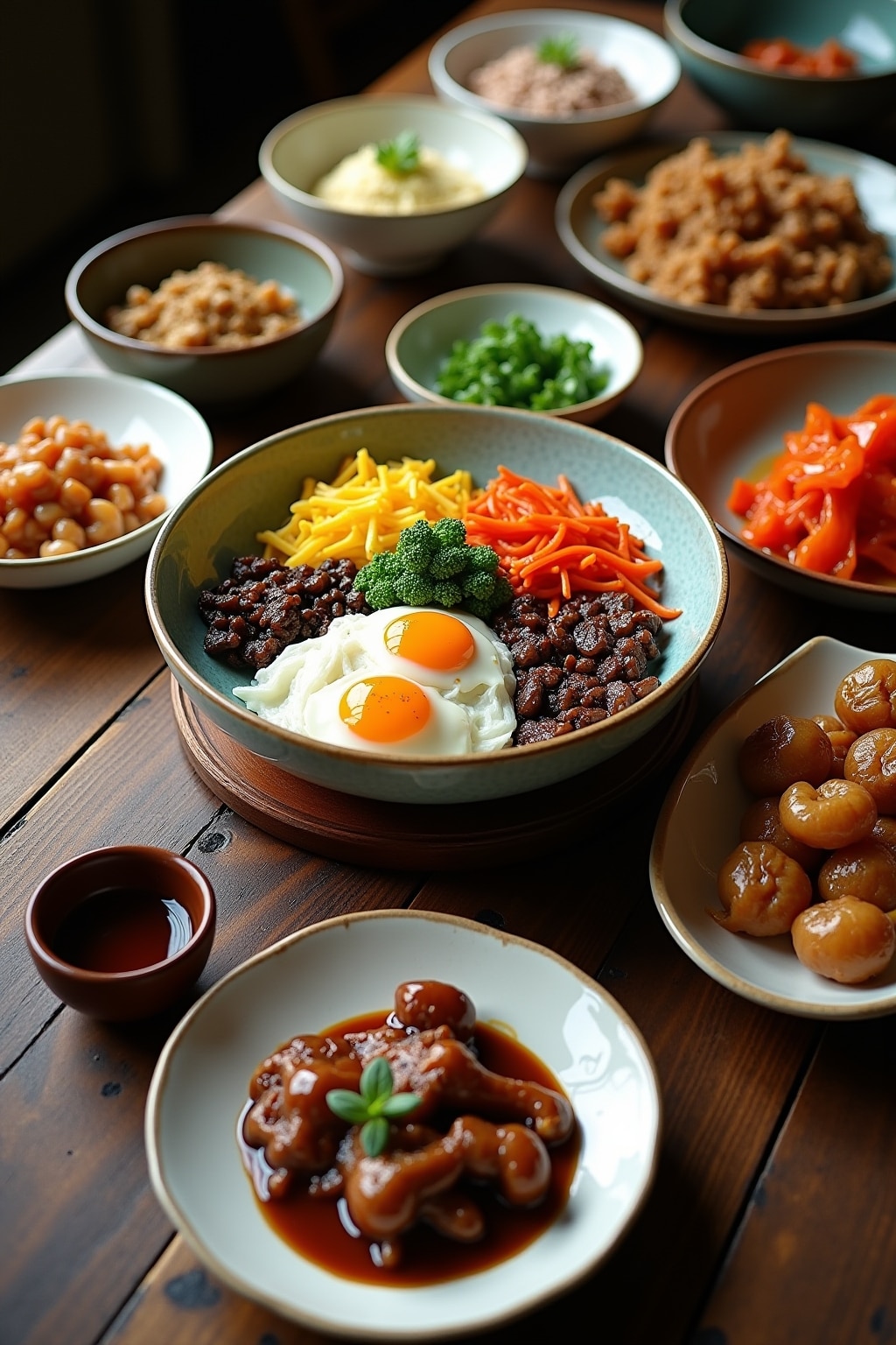 • Kongnamul muchim (seasoned soybean sprouts) for a light, crisp texture