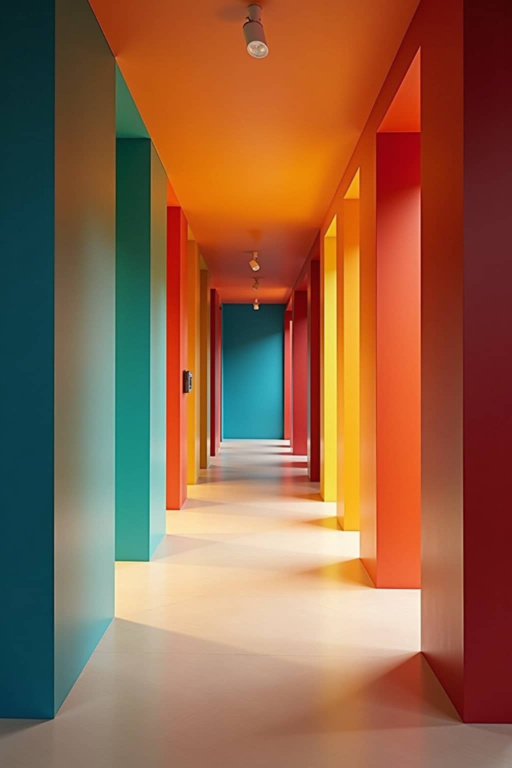 13. Farbige Schattenfugen zwischen neutralen Wandpaneelen