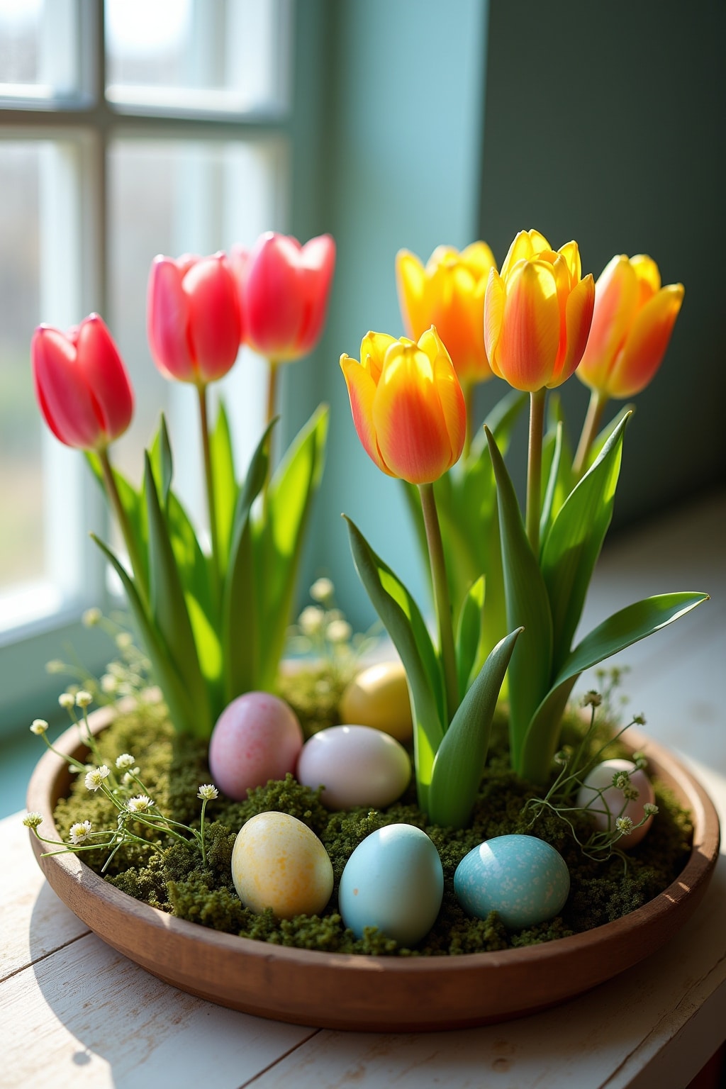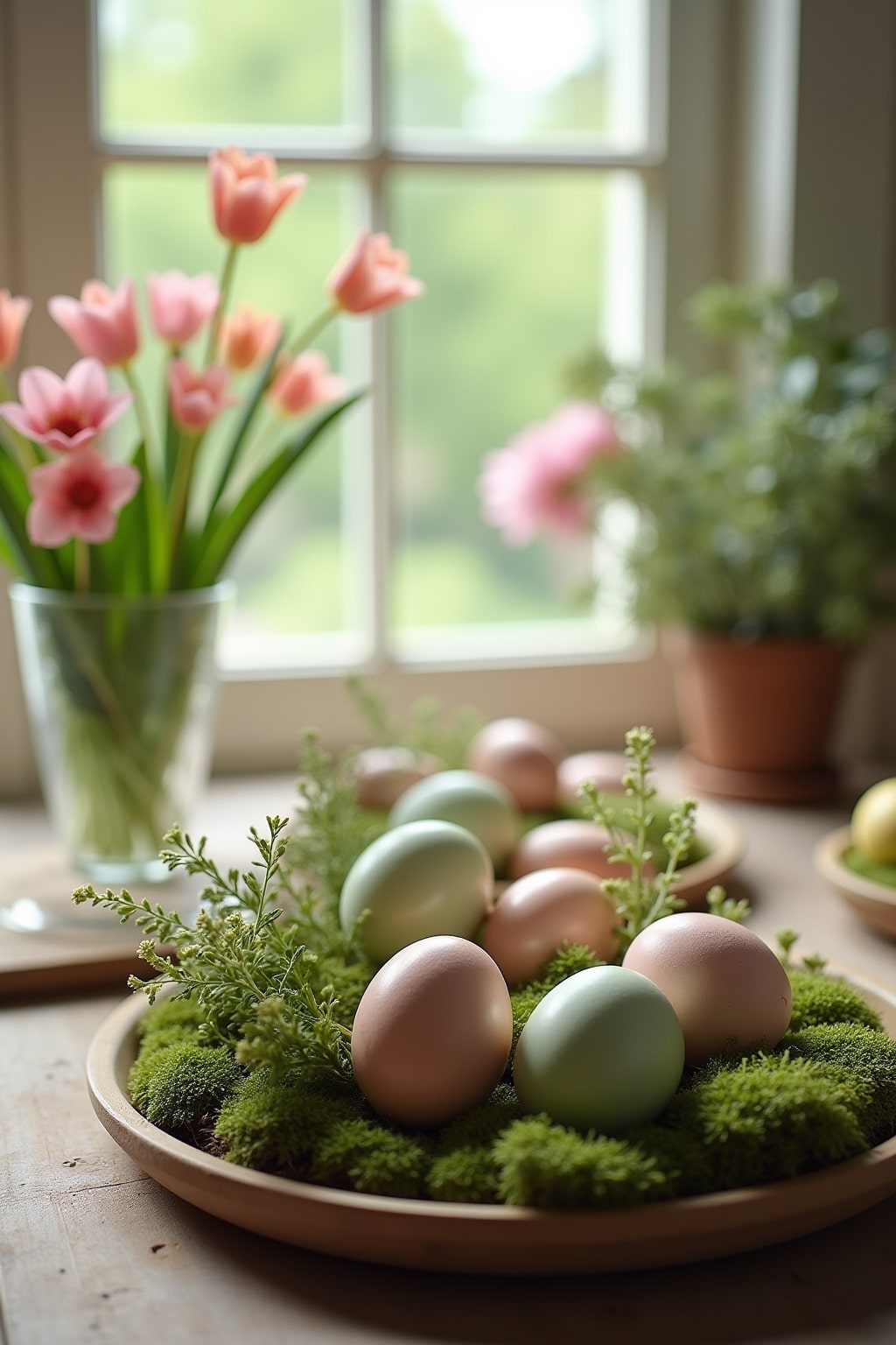 2. Dekoriere mit bunten Ostereiern und Moos für eine natürliche Osternest-Optik