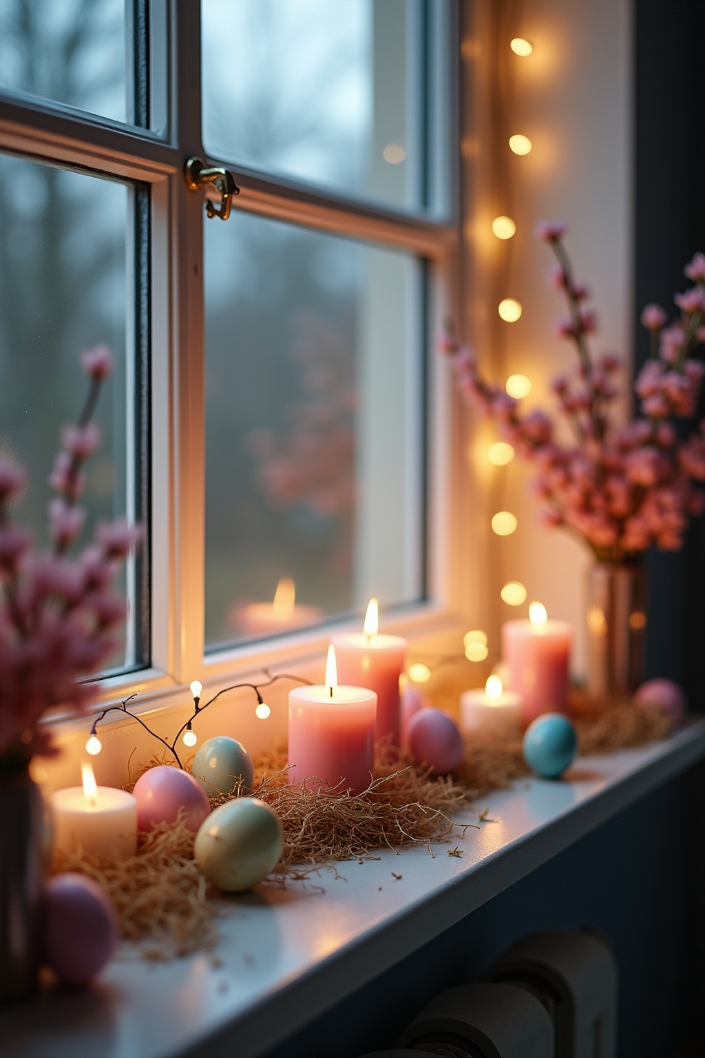 Lichteffekte auf der Fensterbank: Kreative Osterdeko mit Kerzen und Lichterketten