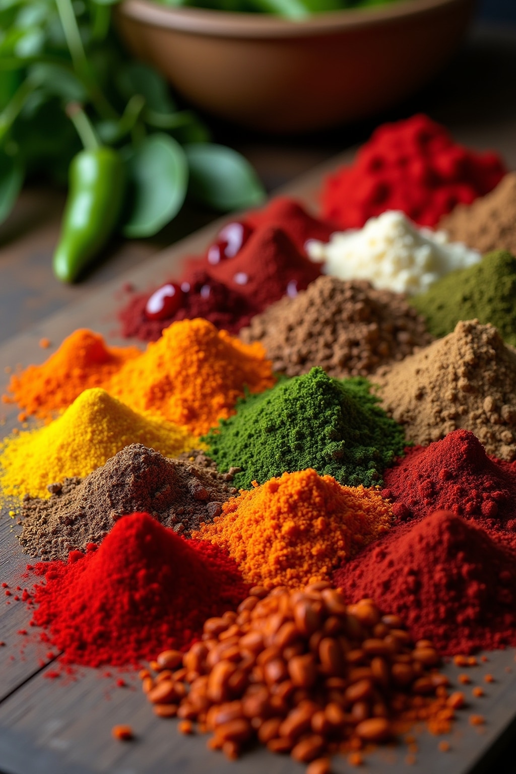 • Spice Techniques: Toasting, roasting, or rehydrating dried chiles changes their heat profile