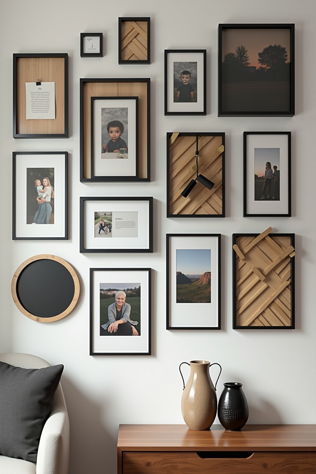 Materialien und Rahmen: Moderne Ideen für stylische Fotowand-Arrangements