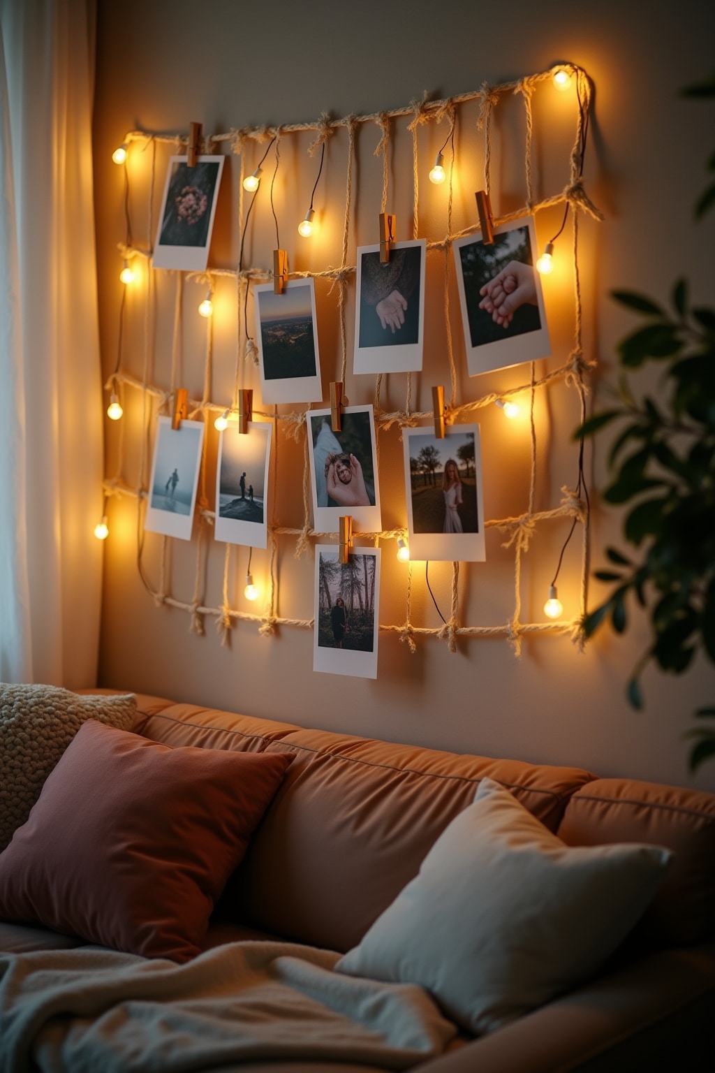7. Polaroid-Wand mit Wäscheleine und Mini-Holzklammern