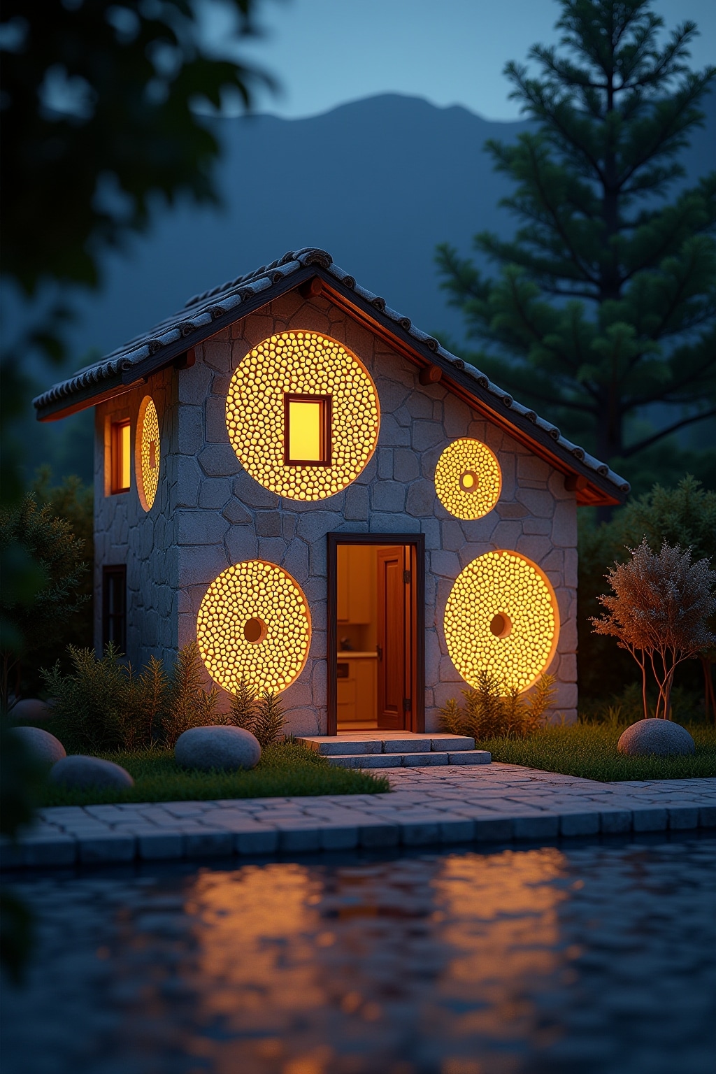 4. Leuchtendes Mosaik mit reflektierenden Glasstücken für bessere Sichtbarkeit bei Nacht