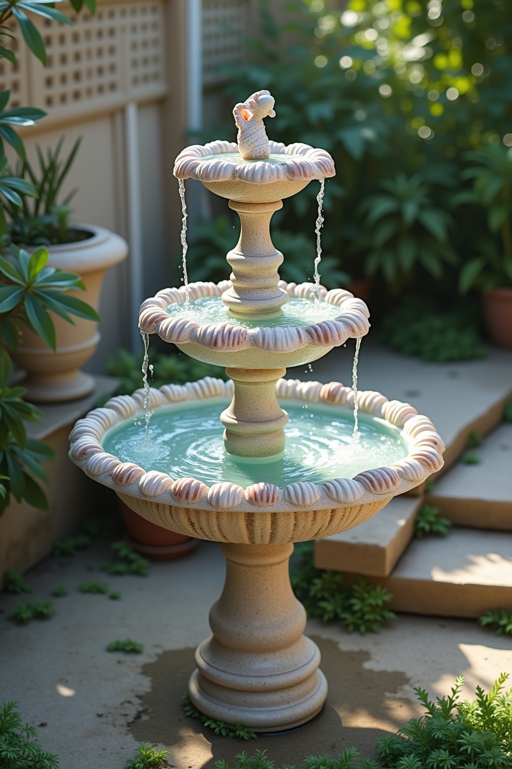 7. Naturnahe Wasserspiele mit Muschelakzenten für Kühlung im Sommer