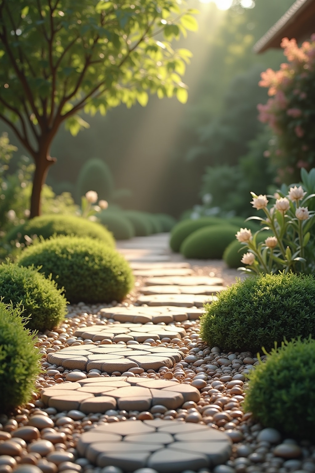 1. Spiralförmige Muschel-Pfade, die zu einem zentralen Punkt im Garten führen